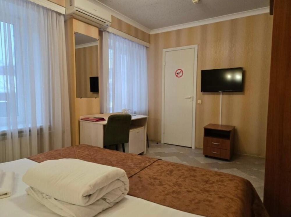 Однокомнатный номер 15м2, ванна комната с душем или ванной, есть номера с балконом, Twin кровати 2 - 90*200, телевизор,кондиционер, телефон, фен, сейф по запросу, моющая парфюмерия, wi-fi.
