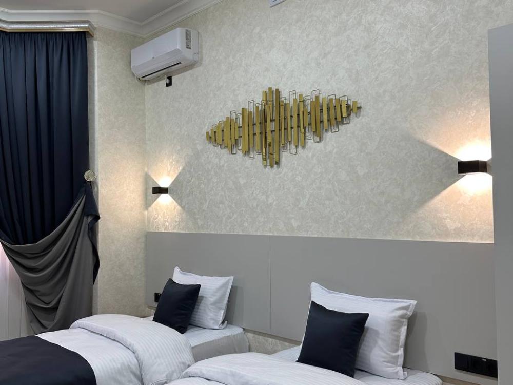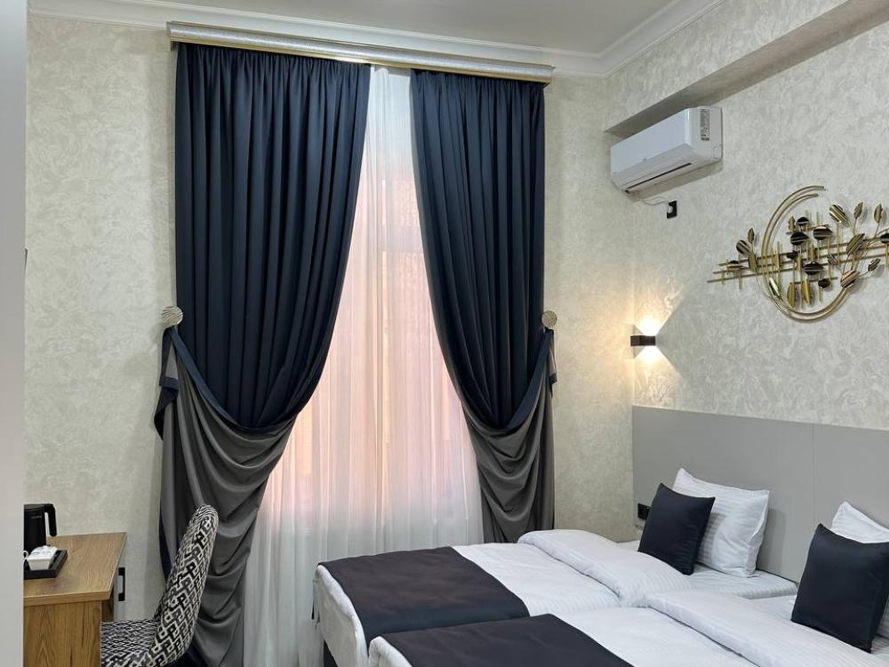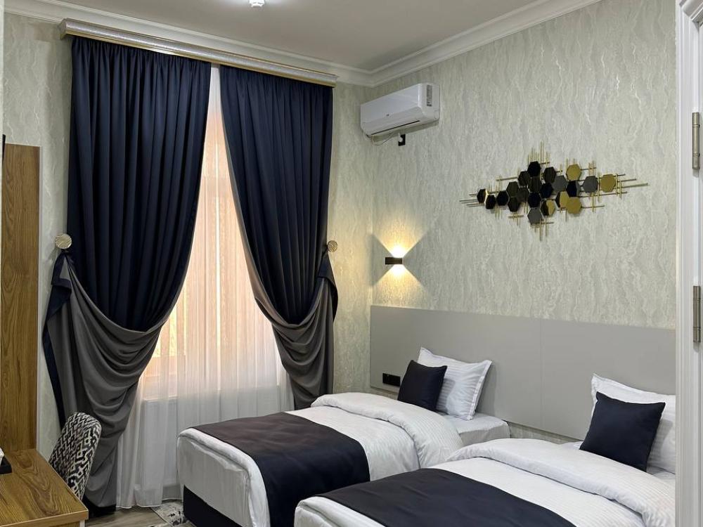 Стандартный номер с двумя односпальными кроватями, кондиционером, быстрым Wi-Fi, рабочим столом и собственной ванной комнатой с душем, гигиеническим набором и полотенцами. Светлый интерьер и продуманные детали создают атмосферу уюта и спокойствия, позволяя полностью расслабиться после насыщенного дня в Самарканде.