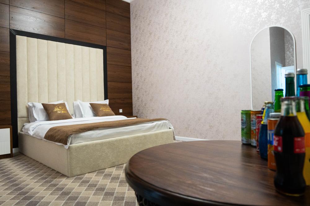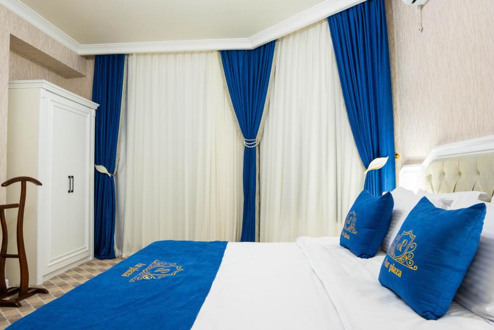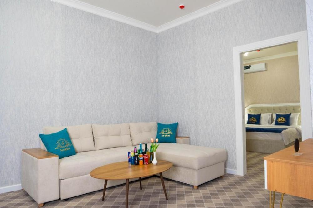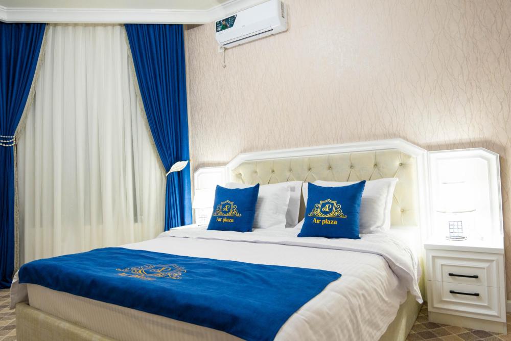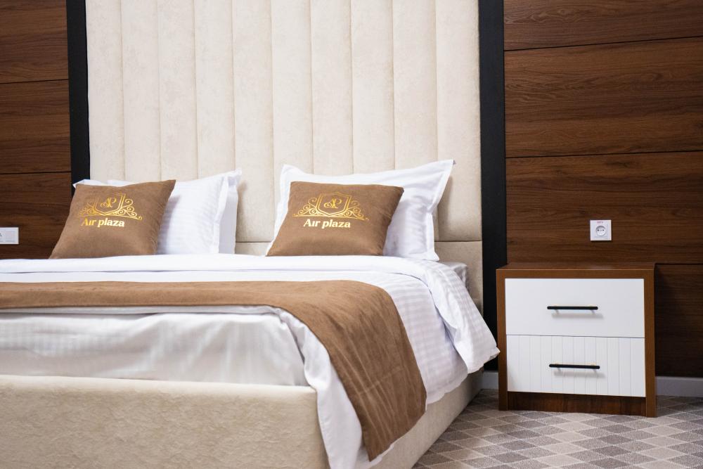 Просторный, светлый и изысканный, номер категории "Люкс" в Air Plaza Hotel создан для тех, кто ценит максимальный комфорт, стиль и дополнительное пространство. Общая площадь номера — от 30 кв.м., что позволяет удобно разместиться как одному, так и двум гостям. Интерьер выполнен в современном стиле с использованием натуральных оттенков, мягкого освещения и качественных материалов, создающих атмосферу уюта и спокойствия.