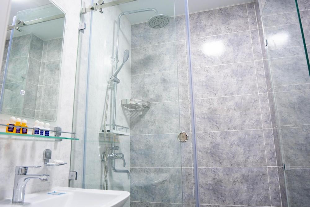 Стандартный номер — это уютный и функциональный номер, идеально подходящий для одного или двух гостей. В номере есть одна двуспальная кровать или две односпальные кровати, рабочее место, кондиционер, телевизор с плоским экраном, бесплатный Wi-Fi, мини-холодильник и ванная комната с душем. Подходит как для деловых поездок, так и для отдыха.