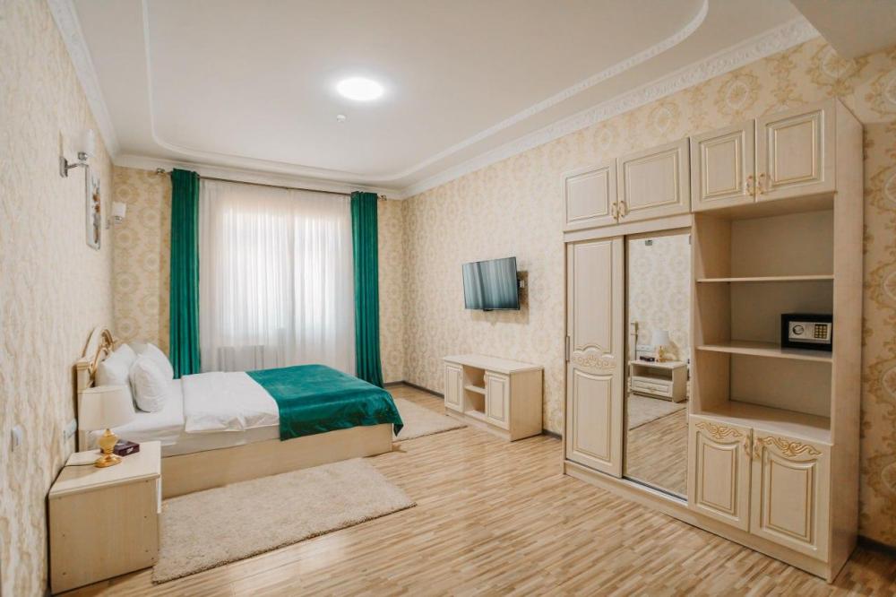Просторный номер с двуспальной кроватью и зоной отдыха Этот просторный и светлый номер идеально подходит для пары или одного гостя, ценящего комфорт и уют. В номере размещено: 1 большая двуспальная кровать Удобная зона отдыха с мягкими креслами и журнальным столиком Благодаря своему размеру и продуманной планировке, номер создаёт атмосферу уюта и расслабления, а также подходит для длительного проживания. В номере есть: Собственная ванная комната Индивидуальный кондиционер Телевизор Бесплатный Wi-Fi Мини-бар Рабочий стол Гардероб Ежедневная уборка Это отличный выбор для пар, индивидуальных путешественников и гостей, предпочитающих простор и комфорт.сторный по площади.