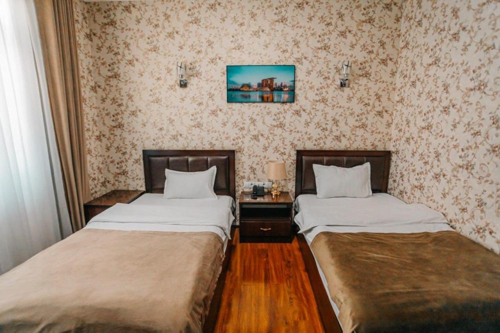 Номер для двоих с двумя отдельными кроватями (Twin Room) Наш Twin Room идеально подходит для двух гостей, которые предпочитают спать на отдельных кроватях. Номер сочетает комфорт, стиль и уют, обеспечивая всё необходимое для приятного проживания. В номере есть: Две отдельные односпальные кровати Отдельная ванная комната Индивидуальный кондиционер Телевизор Бесплатный Wi-Fi Рабочий стол Мини-бар Шкаф для одежды Ежедневная уборка Такой тип номера отлично подходит для друзей, коллег или гостей, которые предпочитают личное пространство во время отдыха.