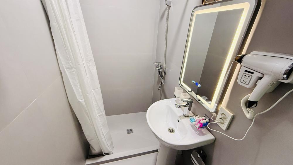 Компактный двухместный номер. Для гостей имеется телевизор, кондиционер, шкаф, зеркало и собственная ванная комната.