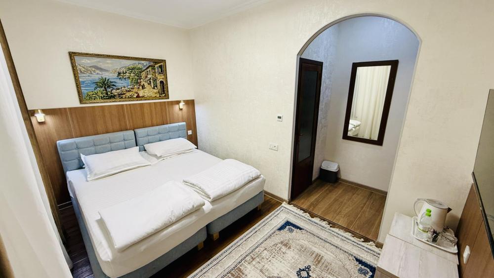 Двухместный улучшенный номер. Для гостей имеется телевизор, кондиционер, шкаф, зеркало и собственная ванная комната.