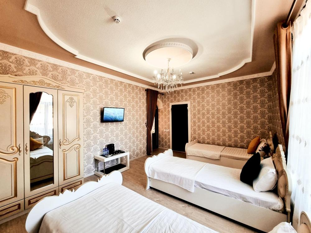 Интерьер выполнен в современном стиле с элементами национального декора. В каждом номере есть кондиционер, телевизор с плоским экраном, мини-холодильник, бесплатный Wi-Fi, рабочая зона, шкаф для одежды и собственная ванная комната с душем или джакузи. Для удобства гостей предоставляются полотенца, косметические принадлежности и фен.