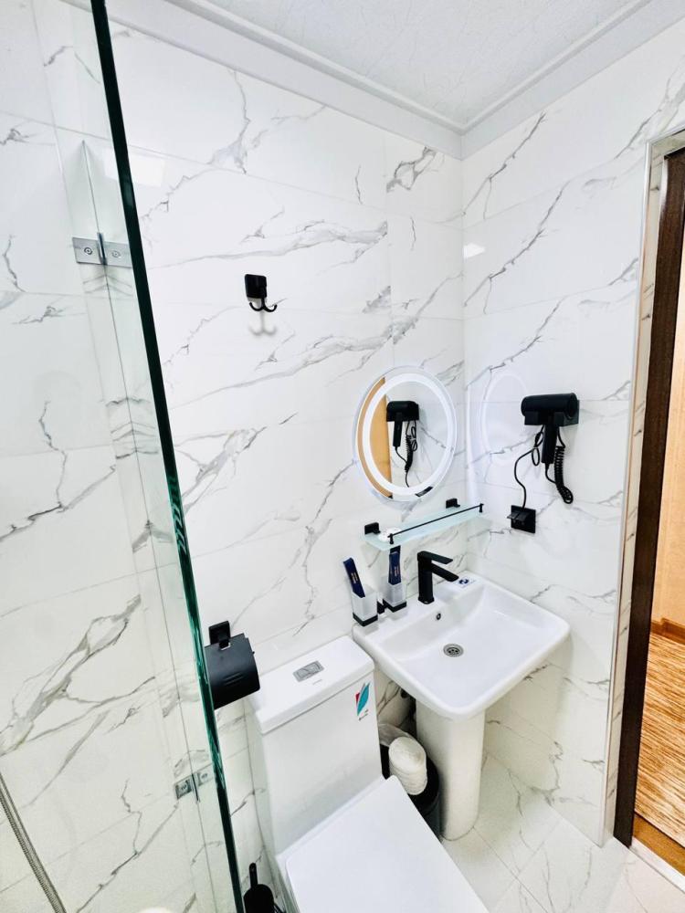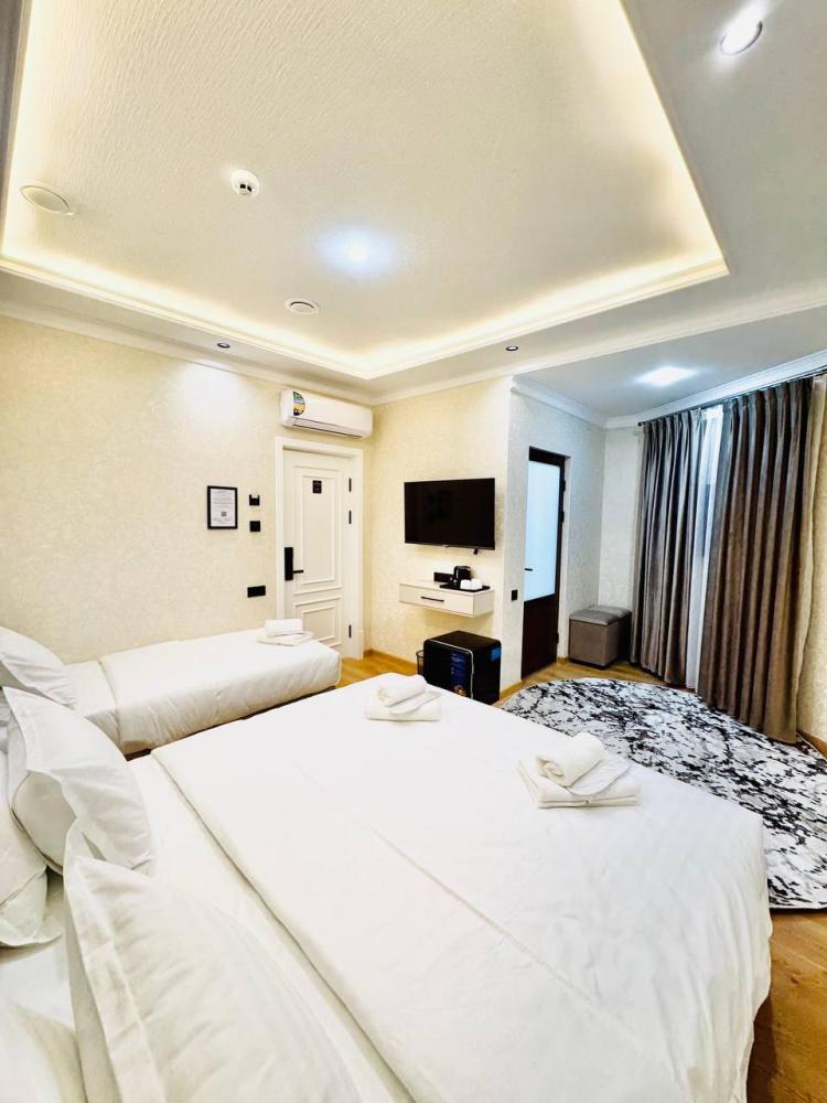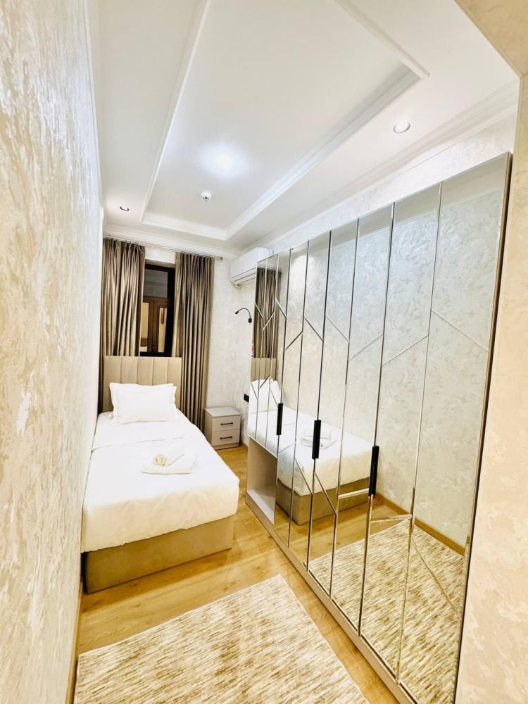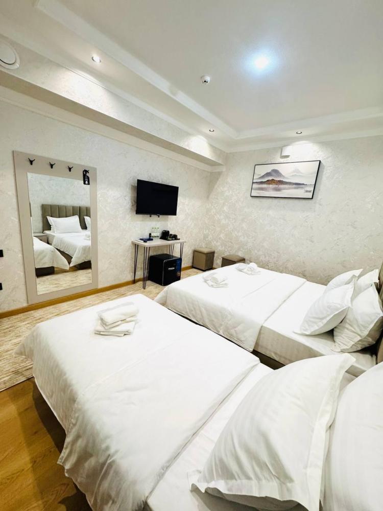 Улучшенный трехместный номер с 1 двуспальной и 1 односпальной кроватями. В номере шкаф для одежды, светонепроницаемые шторы, телевизор, кондиционер, холодильник, чайник. В отдельной ванной комнате - душевая кабина, гигиенический набор, полотенца, тапочки, фен.
