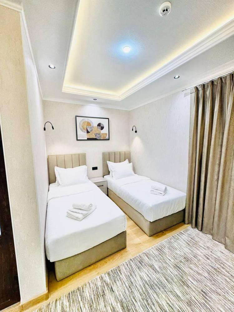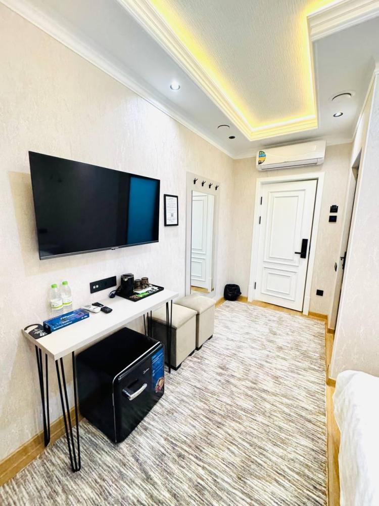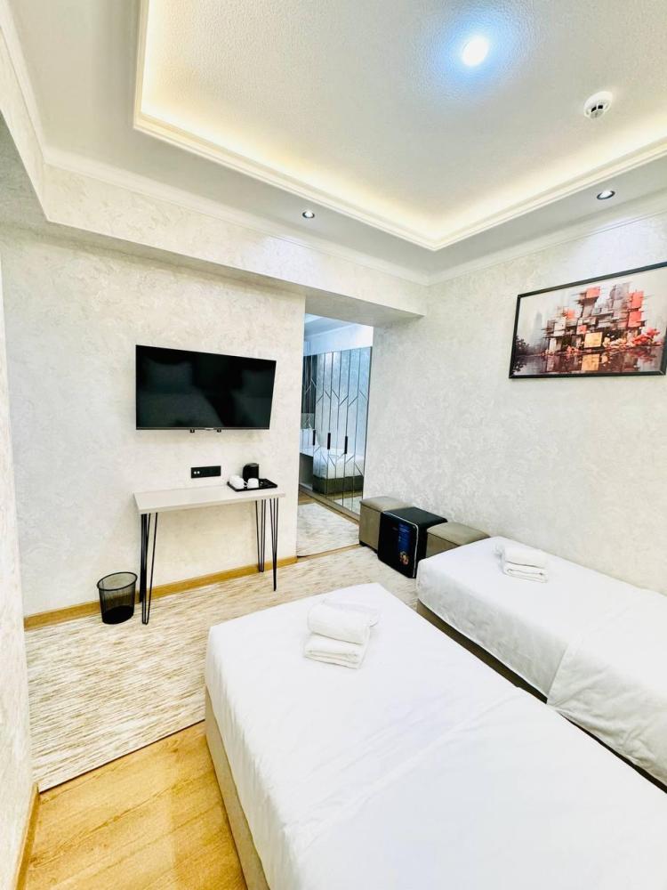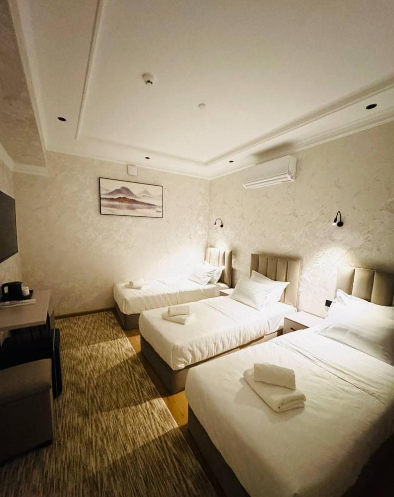 Стандартный трехместный номер без окна с 3 односпальными кроватями. В номере светонепроницаемые шторы, телевизор, кондиционер, холодильник, чайник. В отдельной ванной комнате - душевая кабина, гигиенический набор, полотенца, тапочки, фен.