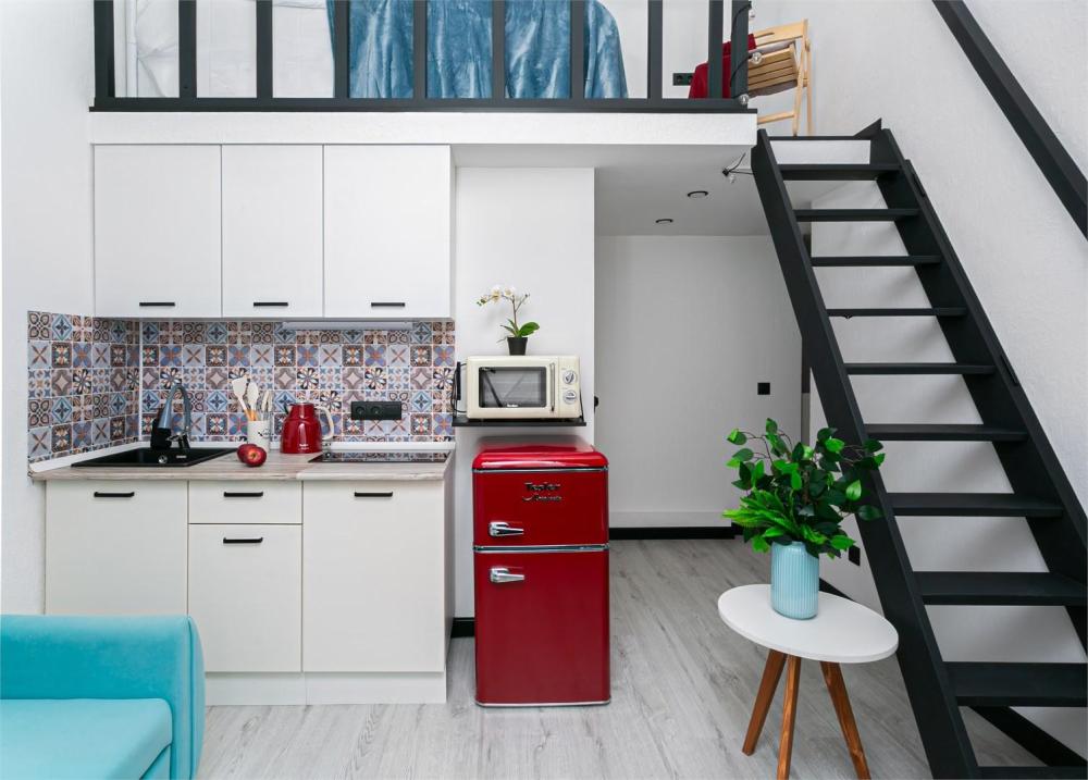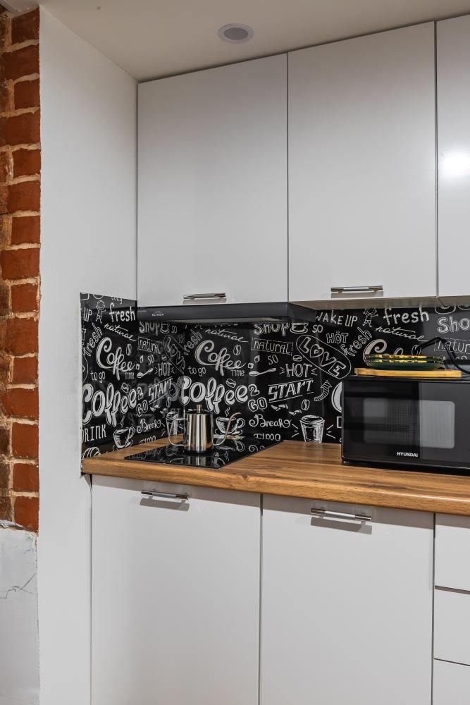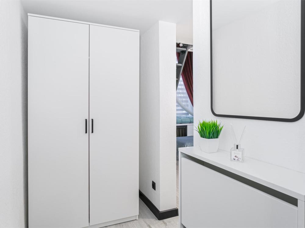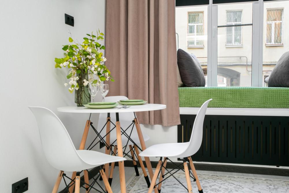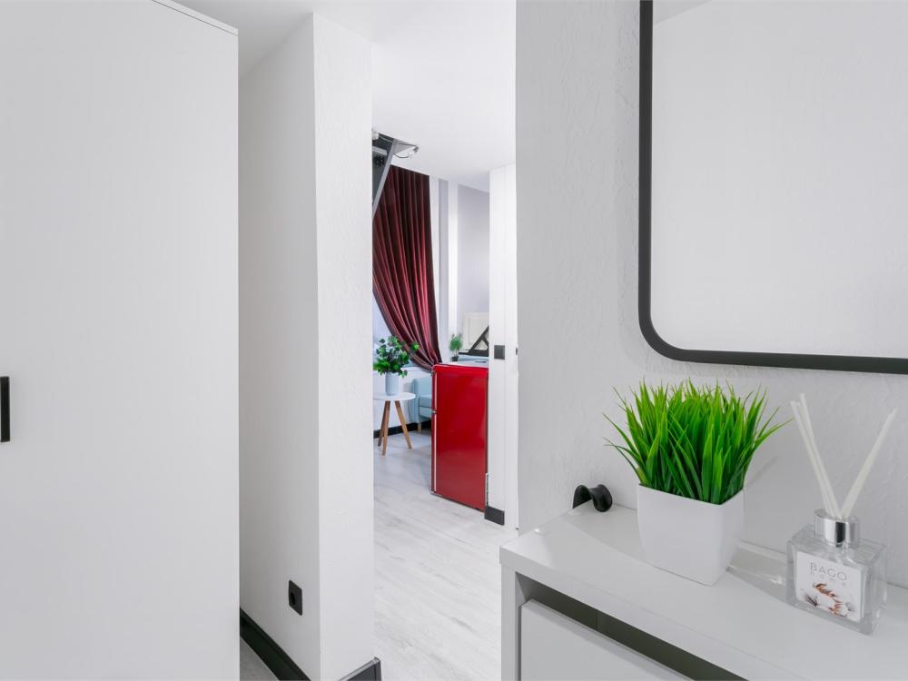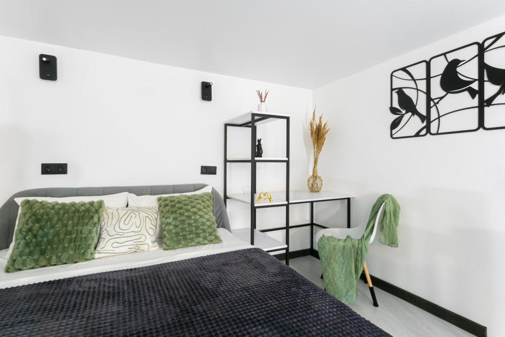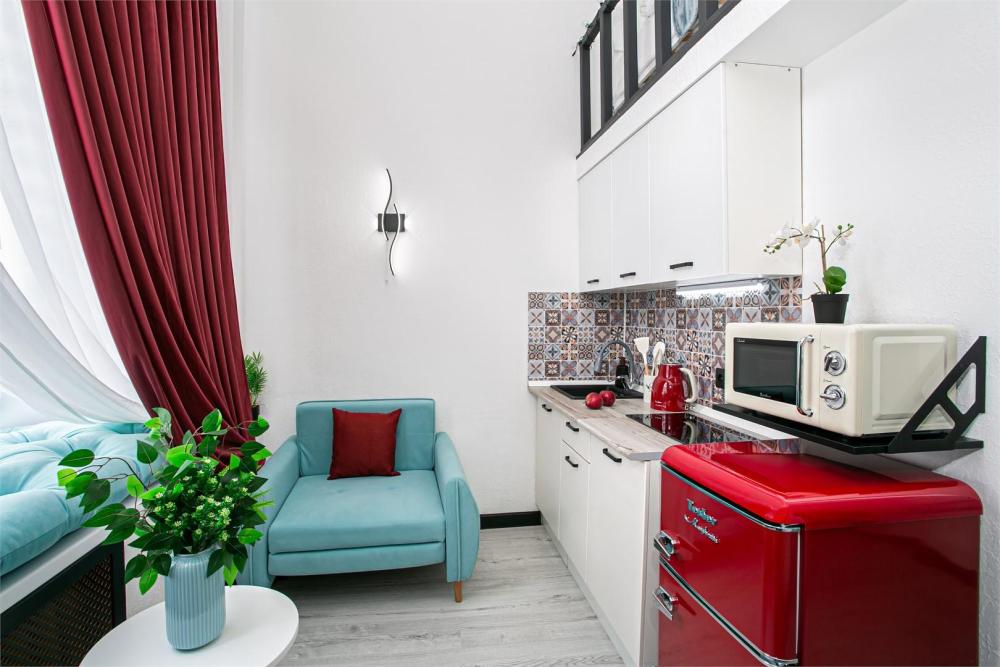 Студия для 43-х гостей. Площадь квартиры 20 м2. Совмещенный санузел с душевой кабиной, кабельное телевидение, Wi Fi, электроплита, стиральная машина, центральное отопление и горячая вода, кондиционер, удобная двуспальная кровать 160 см, высокие потолки 4 метра.
