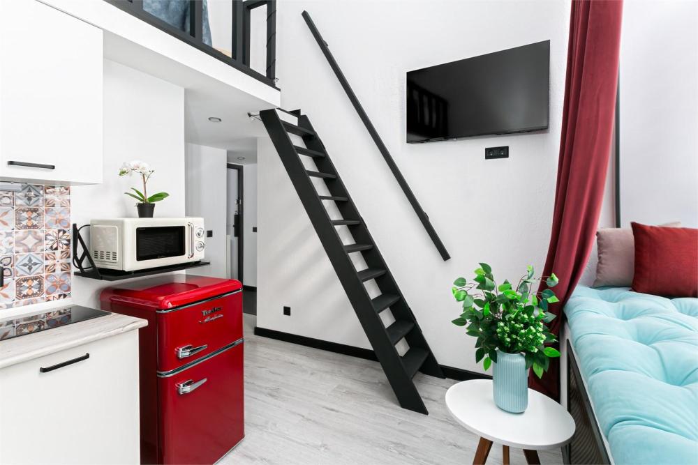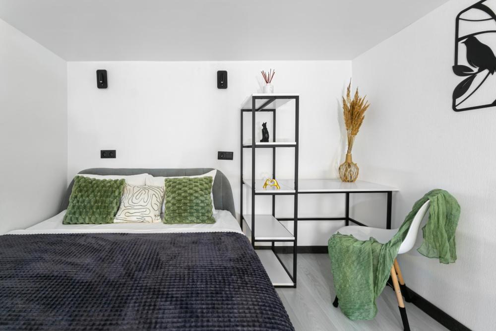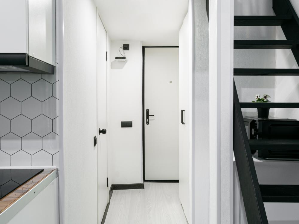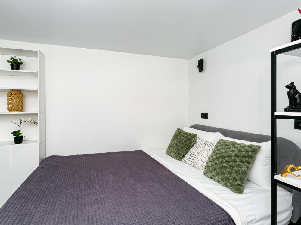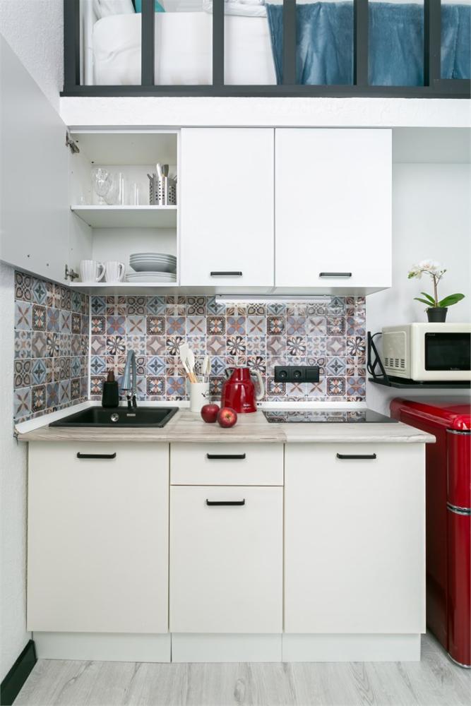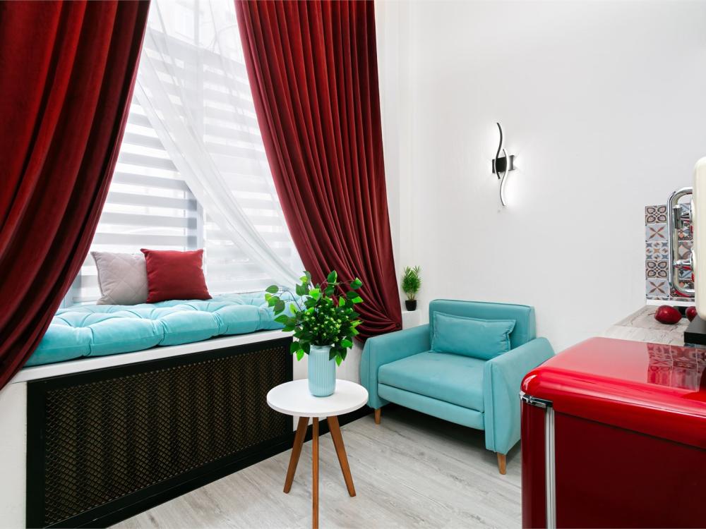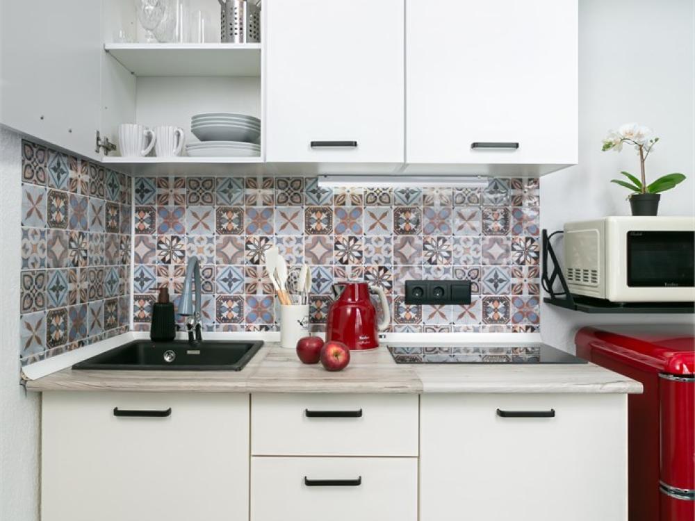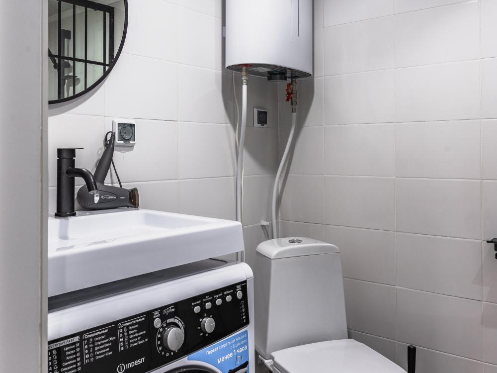 Студия для 43-х гостей. Площадь квартиры 20 м2. Совмещенный санузел с душевой кабиной, кабельное телевидение, Wi Fi, электроплита, стиральная машина, центральное отопление и горячая вода, кондиционер, удобная двуспальная кровать 160 см, высокие потолки 4 метра.