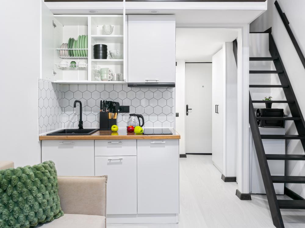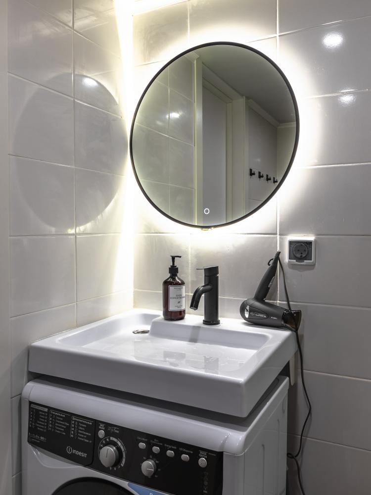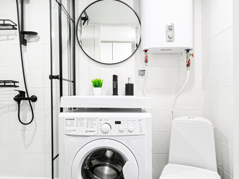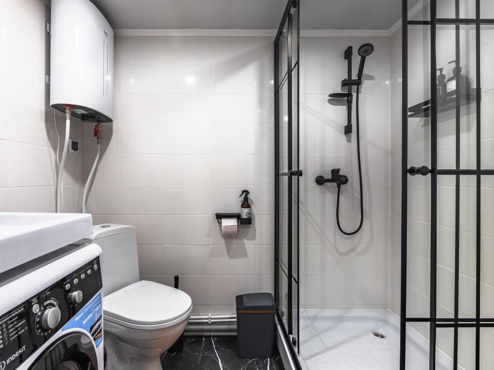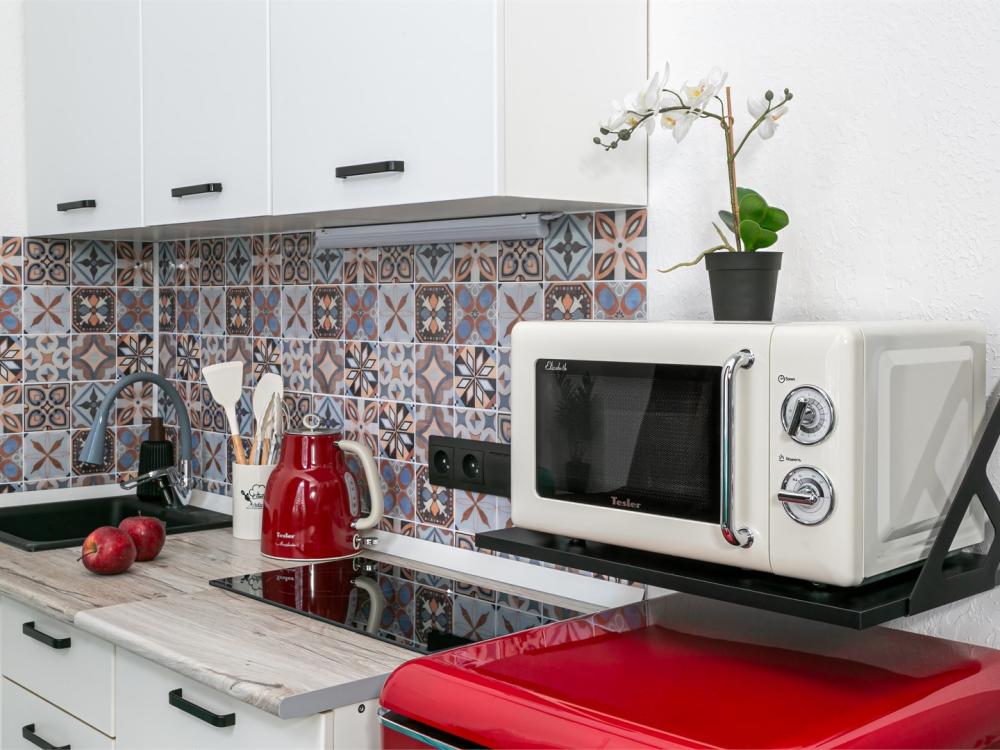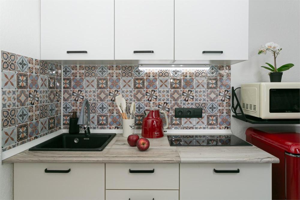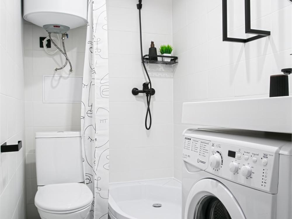 Студия для 43-х гостей. Площадь квартиры 20 м2. Совмещенный санузел с душевой кабиной, кабельное телевидение, Wi Fi, электроплита, стиральная машина, центральное отопление и горячая вода, кондиционер, удобная двуспальная кровать 160 см, высокие потолки 4 метра.