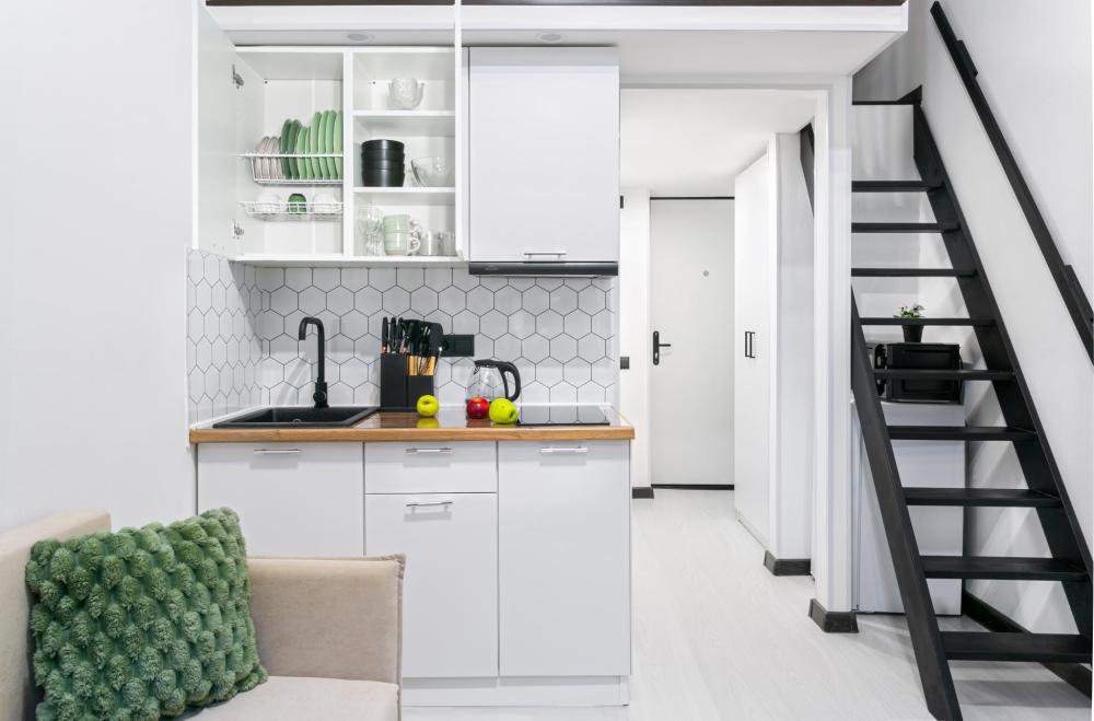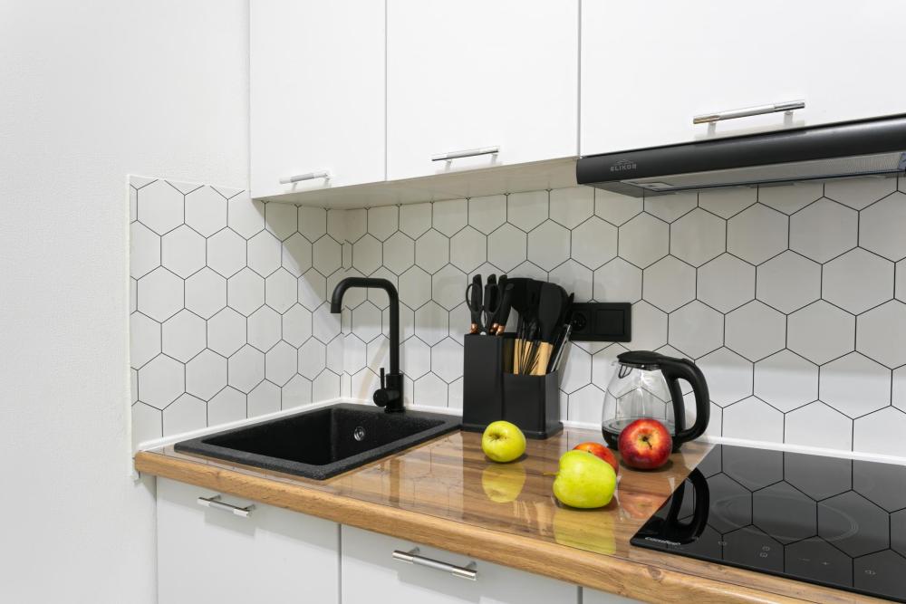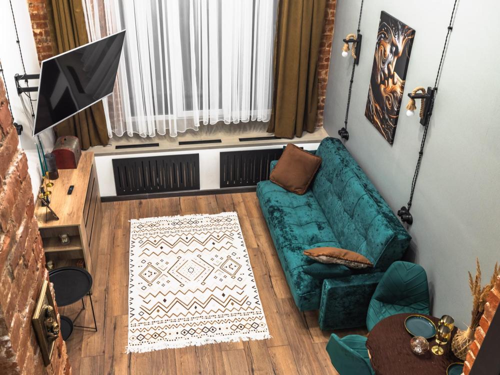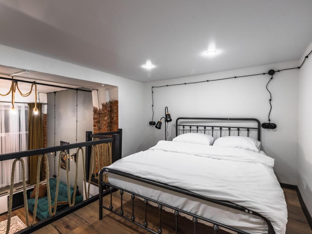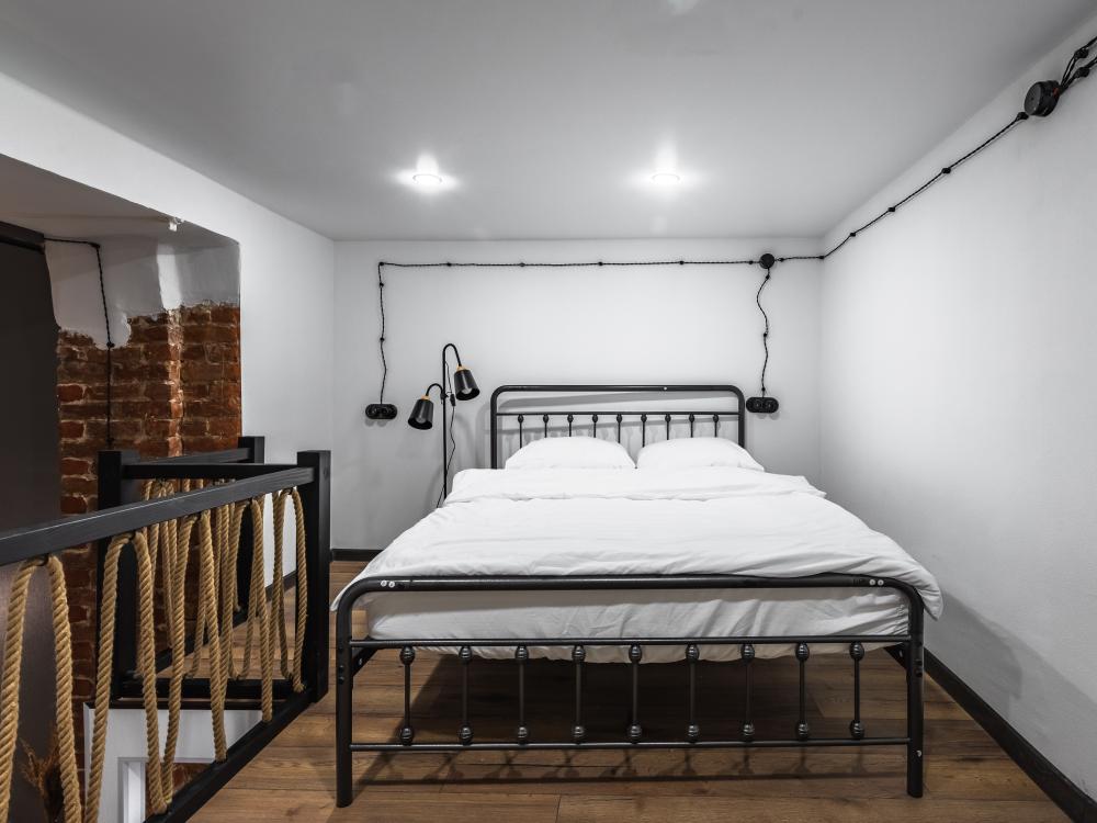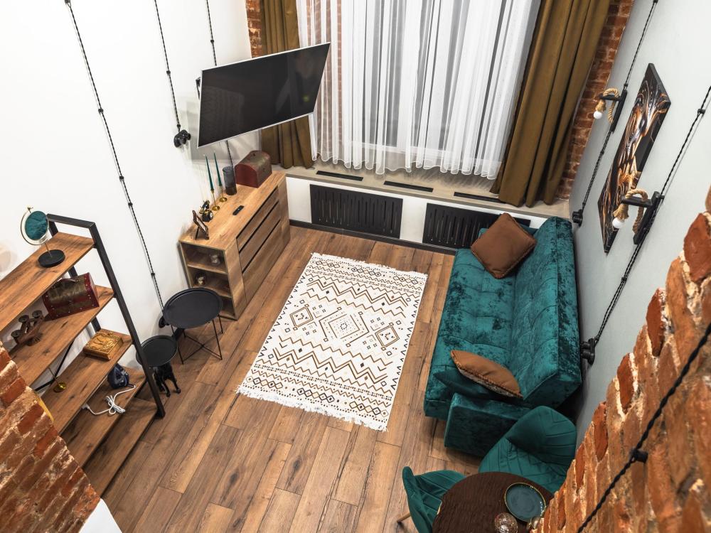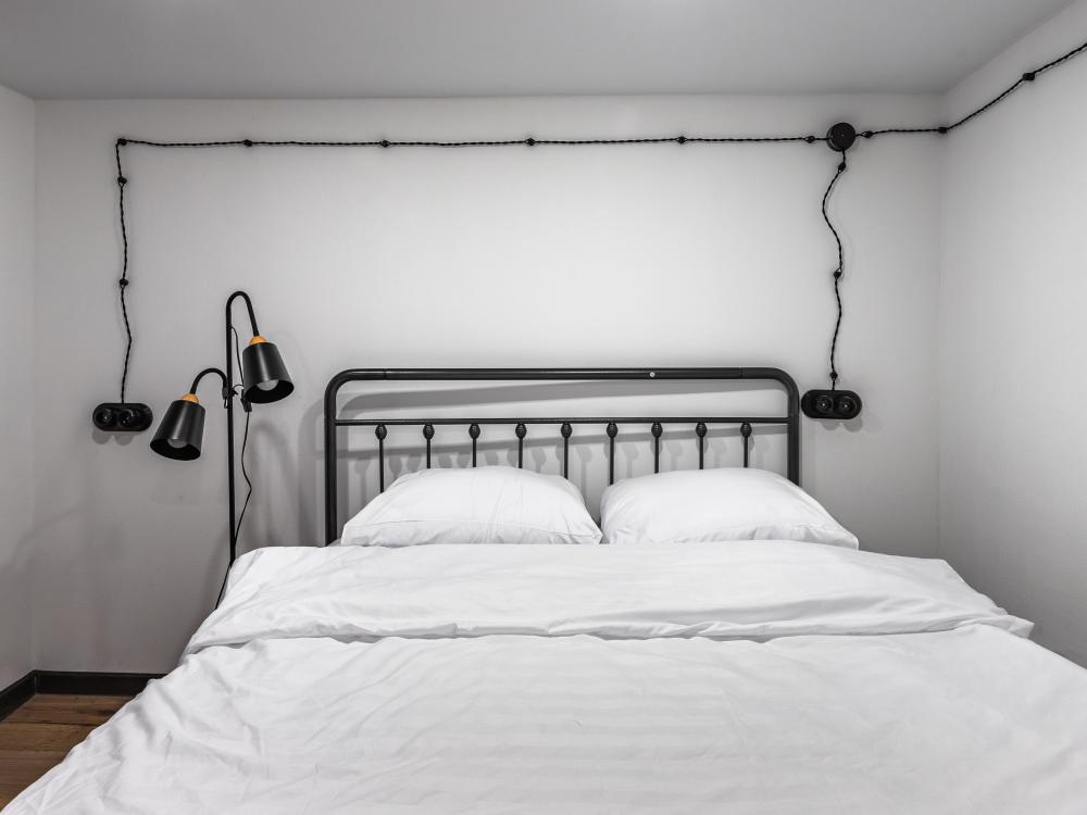 Студия для 4-х гостей. Площадь квартиры 20 м2. Совмещенный санузел с душевой кабиной, кабельное телевидение, Wi Fi, электроплита, стиральная машина, центральное отопление и горячая вода, кондиционер, удобная двуспальная кровать 160 см, высокие потолки 4 метра.