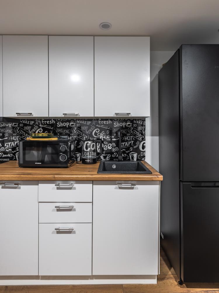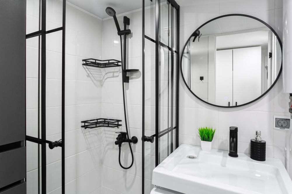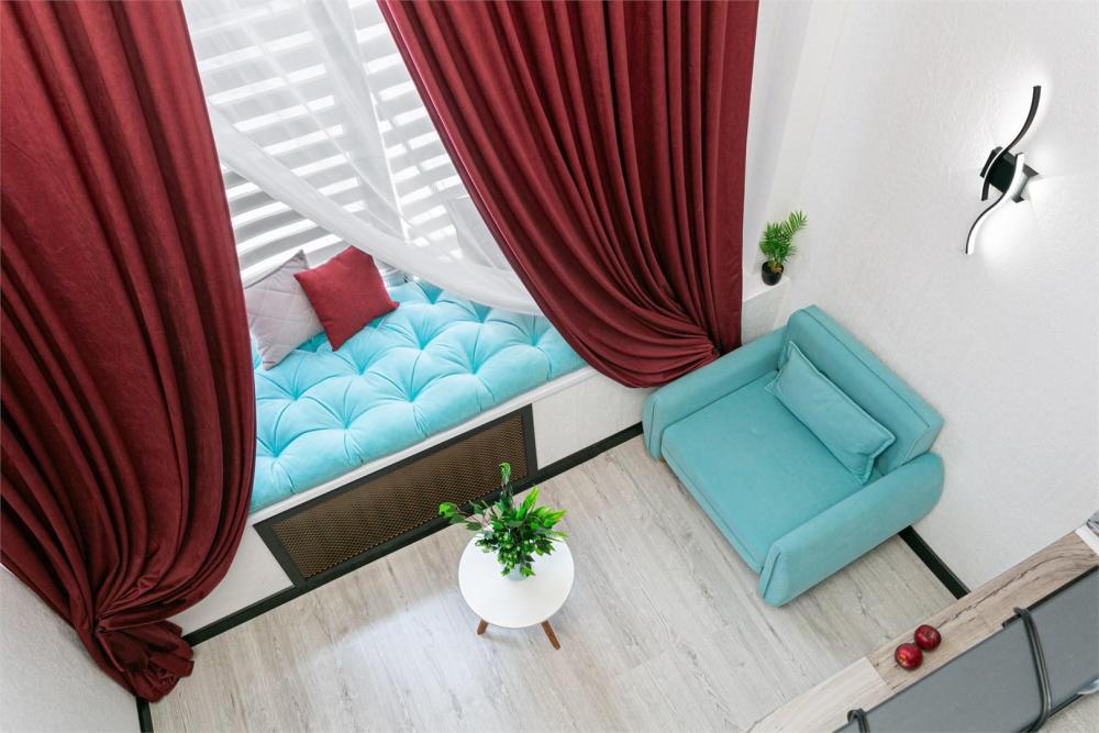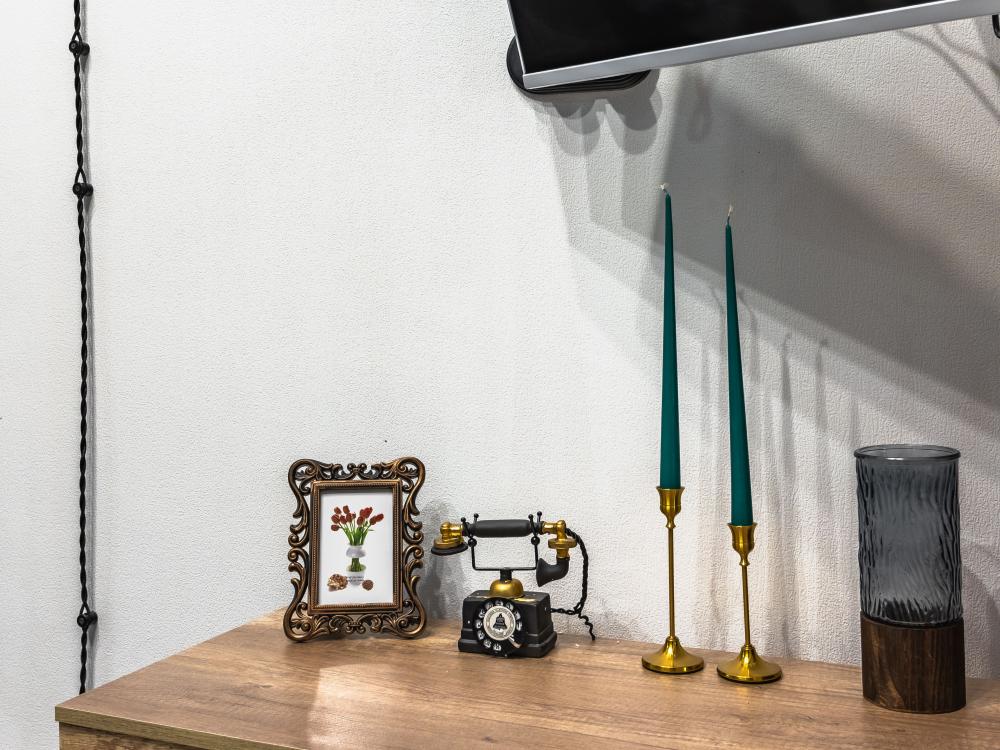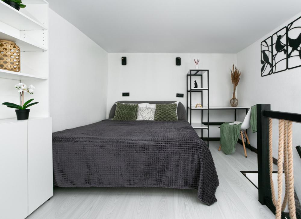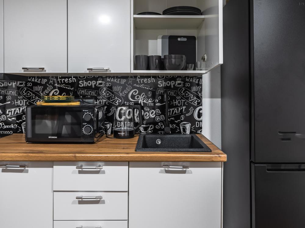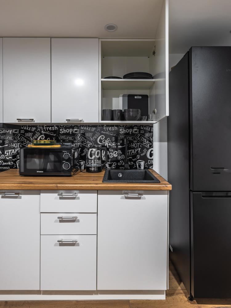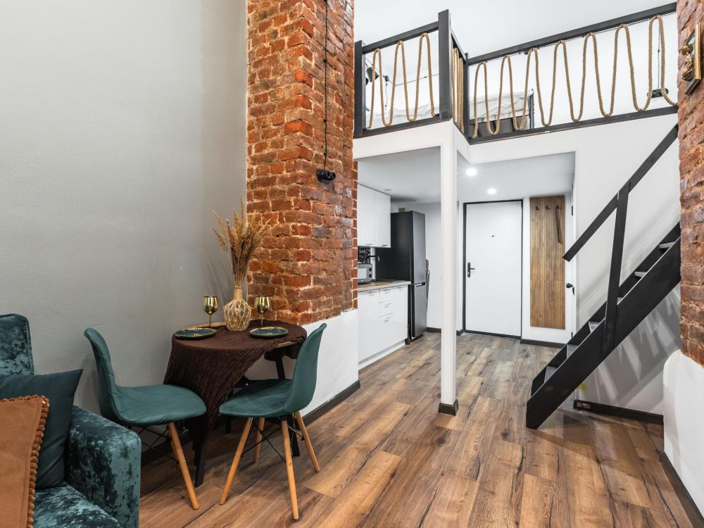 Студия для 4-х гостей. Площадь квартиры 28 м2. Совмещенный санузел с душевой кабиной, кабельное телевидение, Wi Fi, электроплита, стиральная машина, центральное отопление и горячая вода, кондиционер, удобная двуспальная кровать 160 см, высокие потолки 4 метра.
