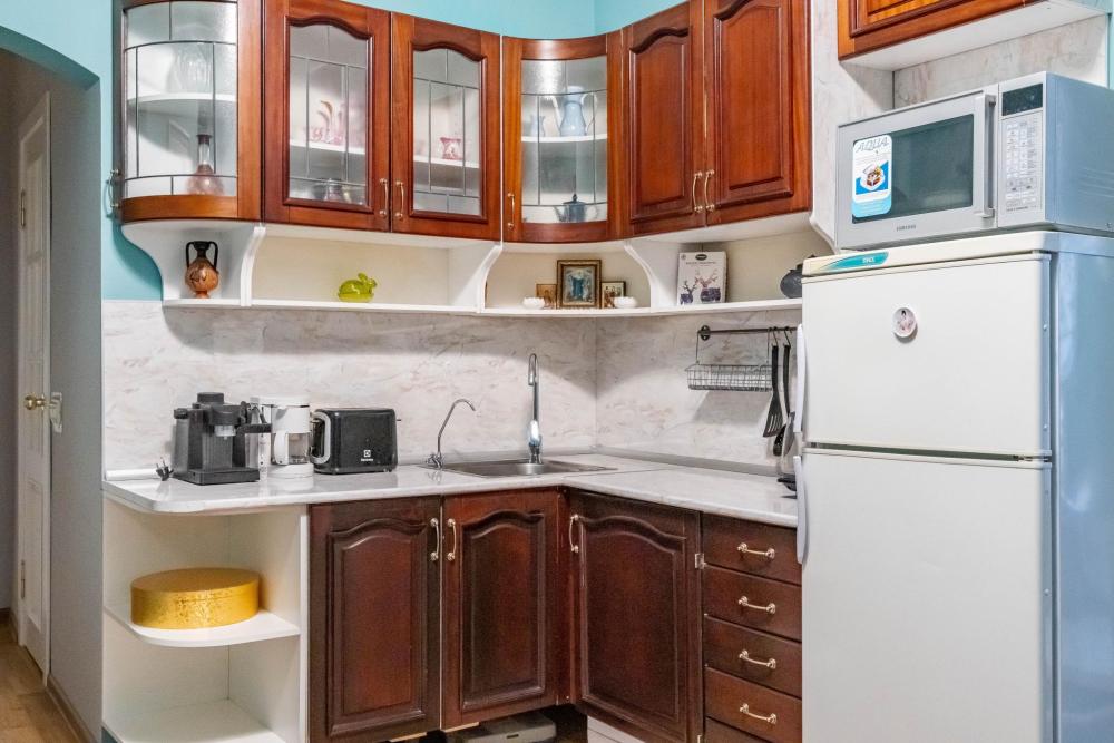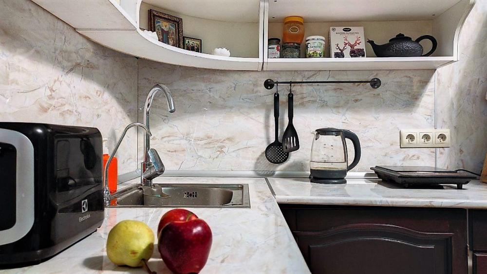В квартире два туалета, душевая, оборудованная всем необходимым кухня.