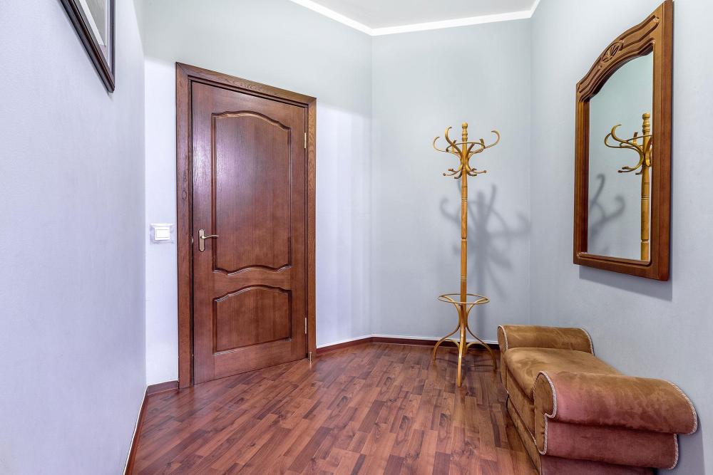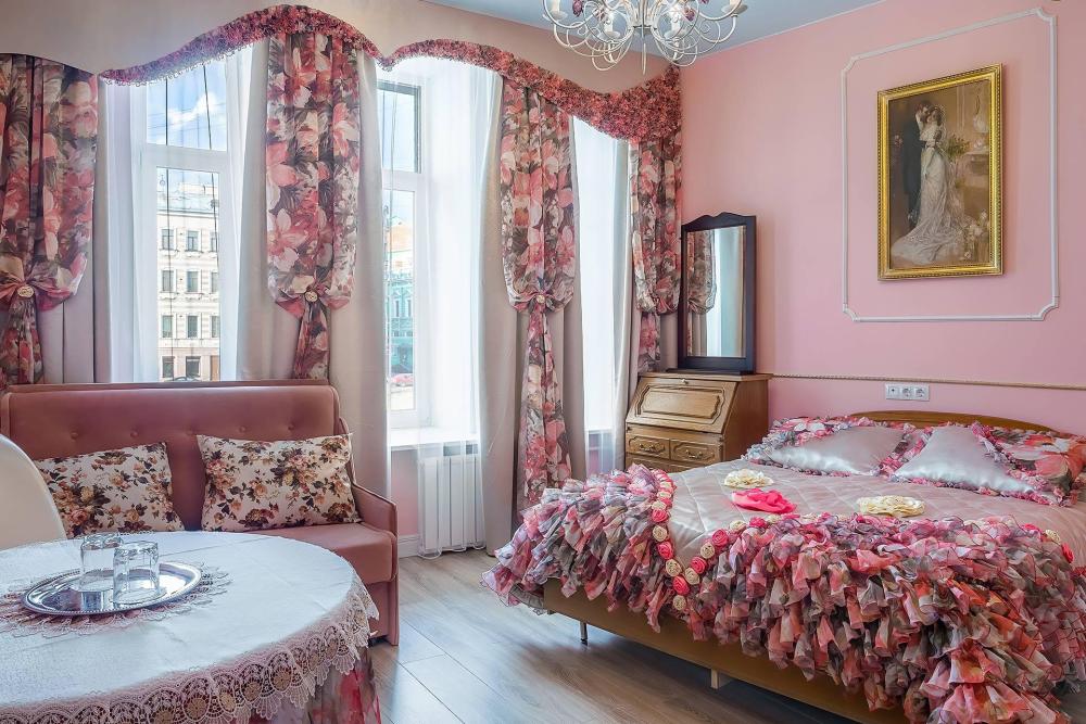 Комфортные и тихие апартаменты с окнами, выходящими в классический для центра Петербурга двор-колодец. Апартаменты состоят из просторной спальни с двуспальной кроватью (160х200), двумя раскладными диванами (140х220), шкафом для вещей, столиком, стулом, зеркалом и телевизором, и кухни-столовой, где расположены обеденный стол и четыре стула, кухонный гарнитур с индукционной плитой, микроволновой печью, холодильником, чайником и набором посуды. В ванной комнате установлены душевая кабинка, раковина и туалет, есть фен.