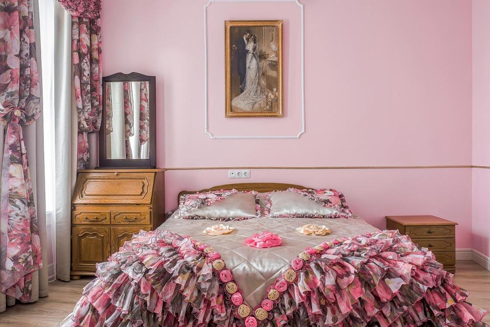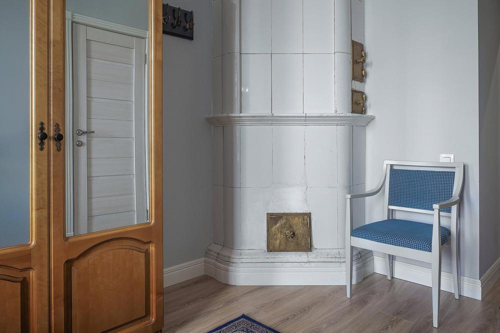 Во всех комнатах: двуспальная кровать, гардероб, мягкая мебель, журнальный столик, прикроватные тумбочки, стол-бюро, шторы, изразцовый камин, ванная комната.