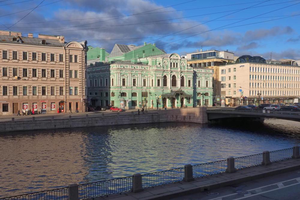 Великолепный, светлый, комфортный апартамент с эркерами и окнами, выходящими на реку Фонтанку. В студии: полноценная просторная кухня, двуспальная кровать, два раскладных дивана, шкаф для вещей, обеденный стол и стулья, журнальный столик, два кресла, ковер, зеркало. В ванной комнате установлены душевая кабинка, раковина и туалет, есть фен.
