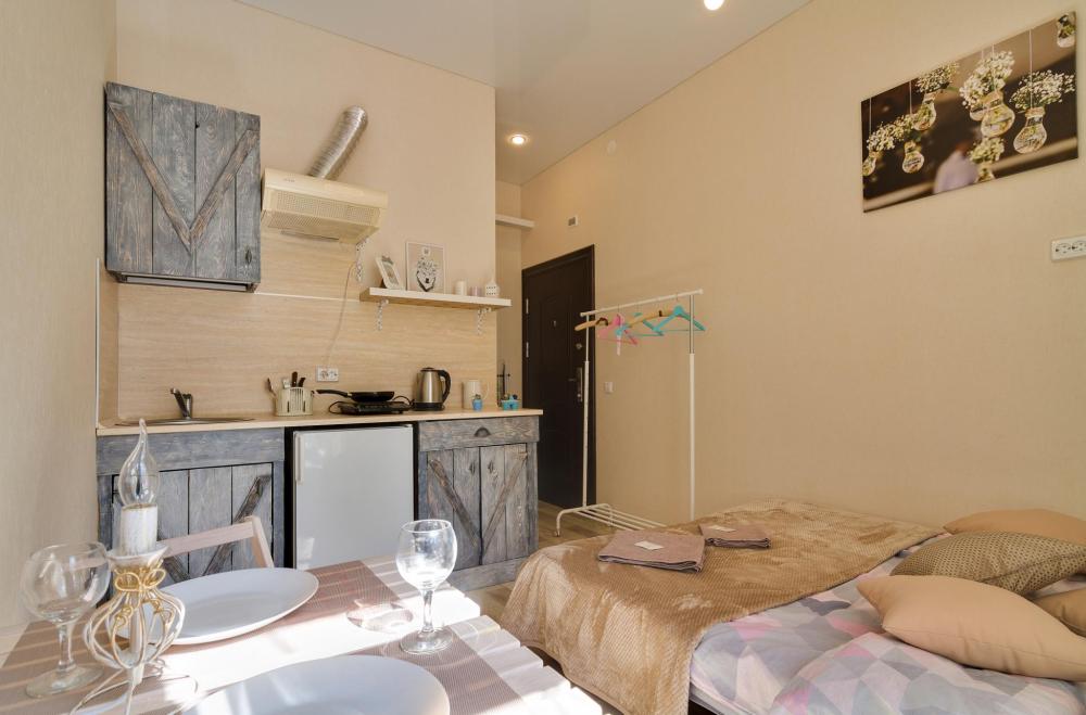 Проживaниe в сaмом живописном месте Сaнкт-Петeрбуpгa, в Петроградском районе города на Неве. Стильные студио в стиле лофт от 17 до 25 м, расположенные в историческом центре Санкт-Петербурга Петроградской стороны, на тихой улице с закрытым двором. Высокие потолки, два окна с широкими функциональными подоконниками, дизайнерский деревянный стол, большие кровати.