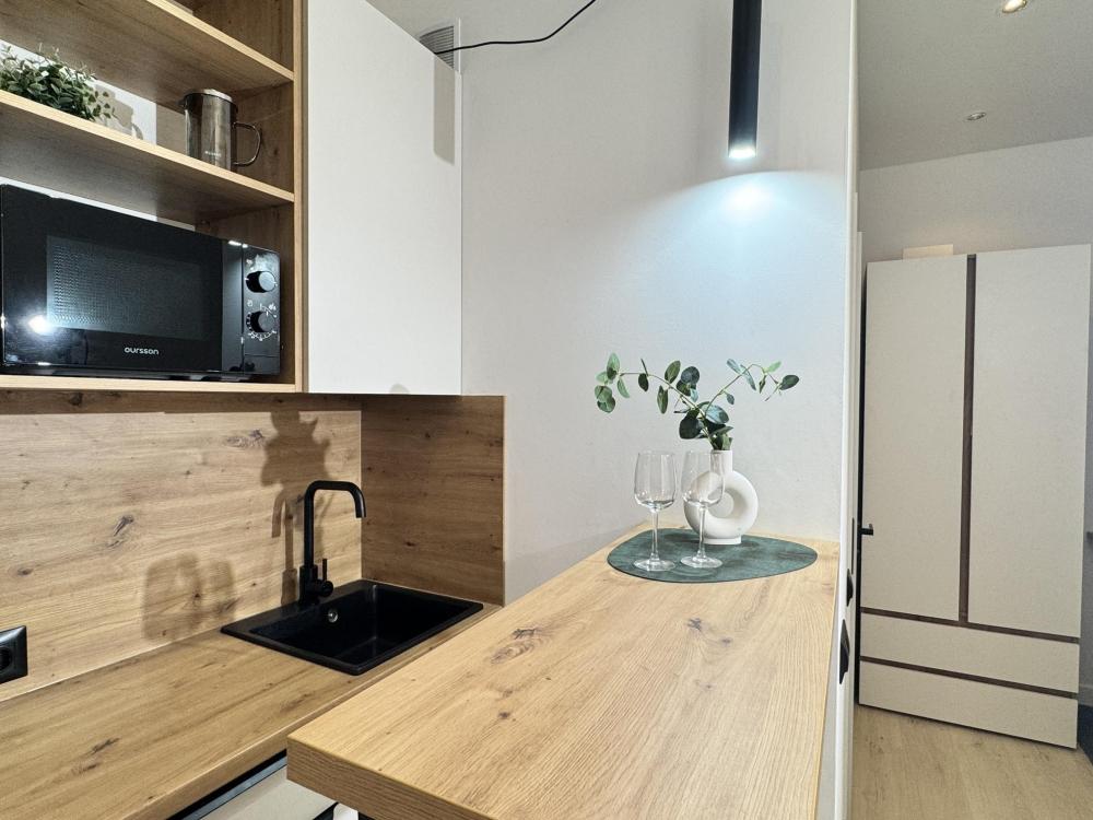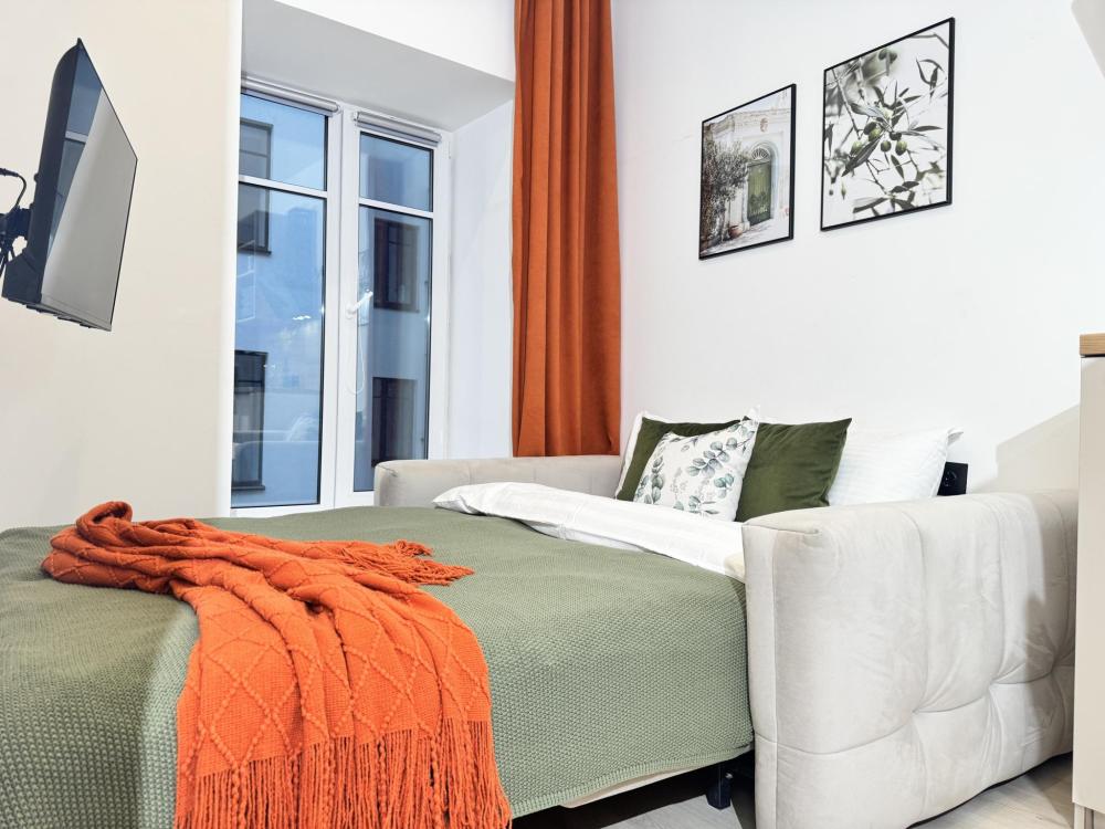 СПАЛЬНЫХ МЕСТ 2: комфортный двуспальный диван В АПАРТАМЕНТАХ ВАС ЖДЕТ: • Мультимедиа: WI – FI, телевизор • Бытовая техника: плита, холодильник, фен, утюг, кондиционер, стиральная машина, СВЧ, водонагреватель • Дополнительно: постельное белье, полотенца, средства гигиены, посуда, чай, сахар Дизайнерский ремонт добавит расслабляющую атмосферу и хорошее настроение. Наши апартаменты выбирают семьи с детьми и дружные компании путешественников, приехавшие на отдых и деловые командировки.