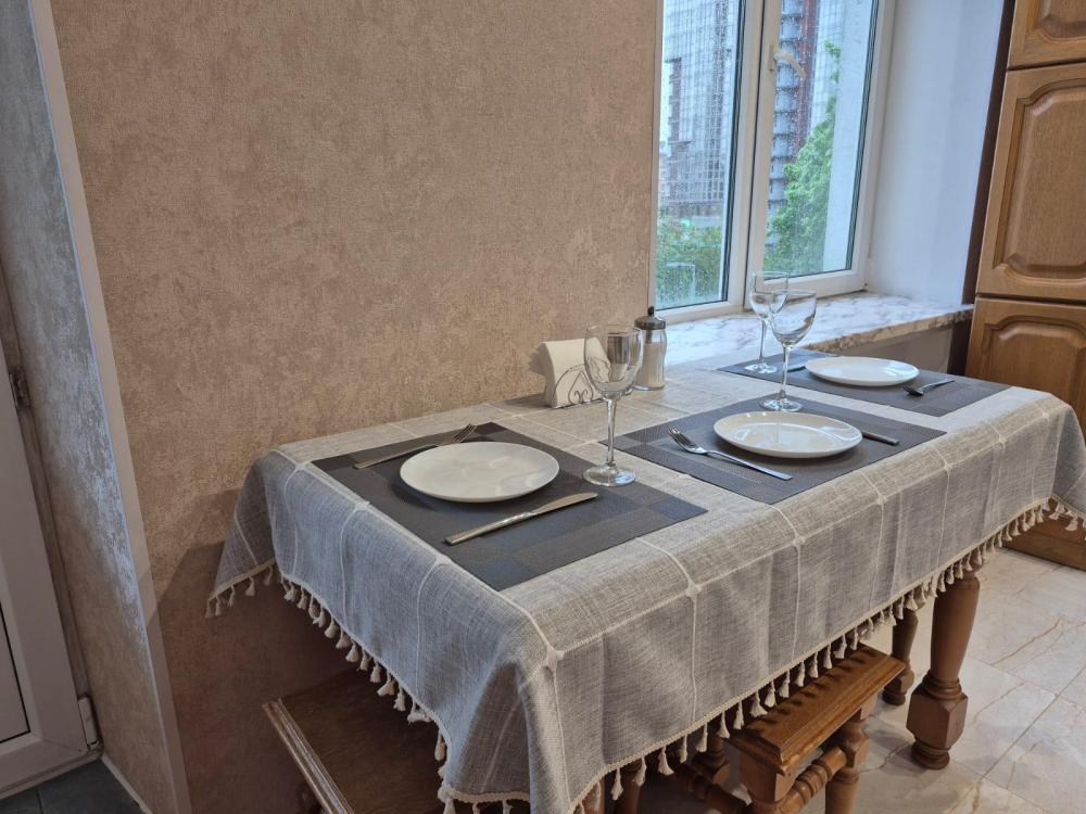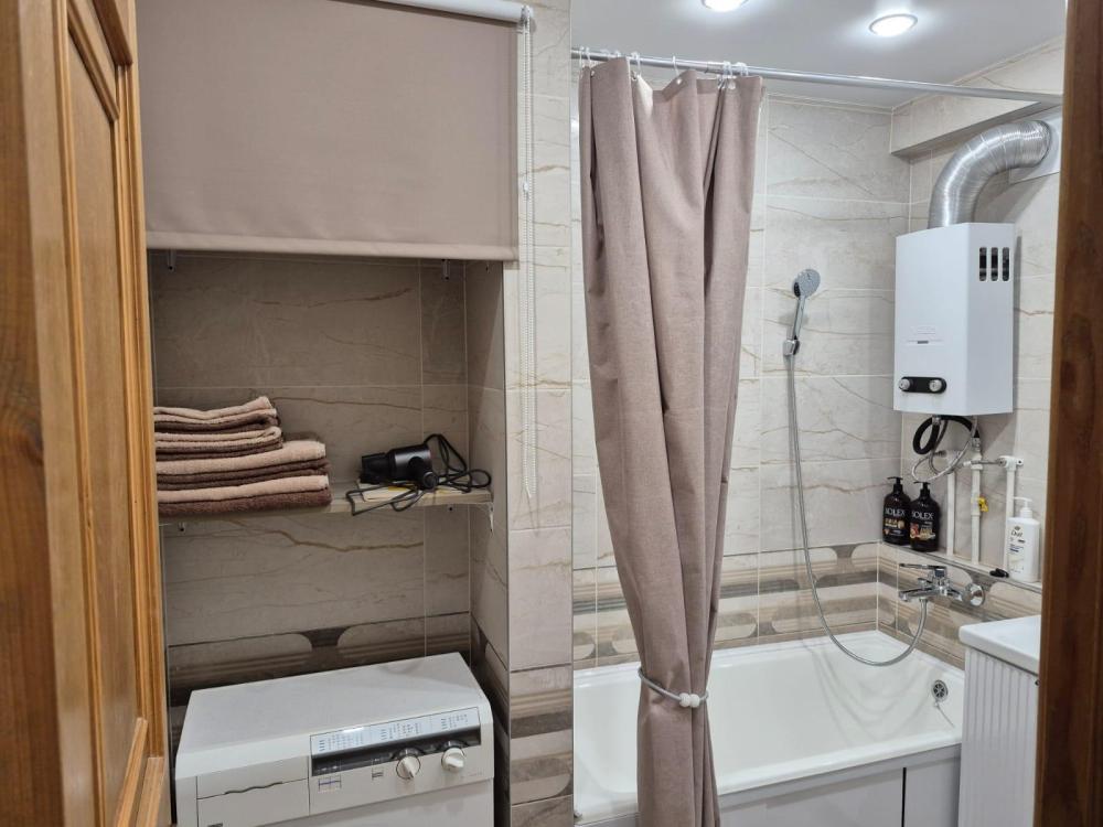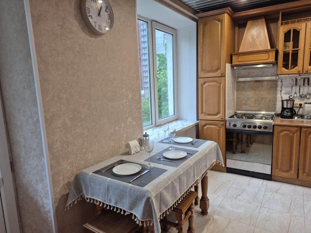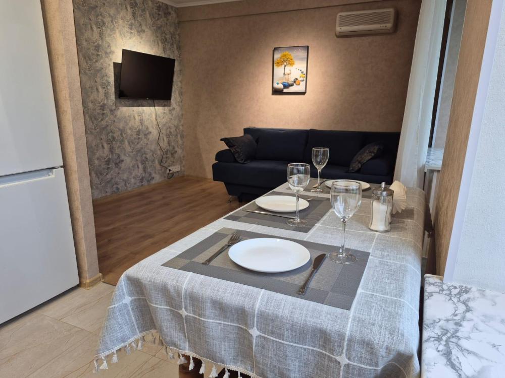 Уютные апартаменты оборудованные всем необходимым для комфортного проживания. Спальные места: двуспальная кровать, раскладной диван. В апартаментах: кухня оборудованная всей необходимой техникой и посудой, кофеварка, электрический чайник, набор кастрюль, сковородок и другое, кондиционер, Wi-Fi, санузел с ванной и стиральной машиной. В стоимость проживания входит свежее постельное белье, полотенца.