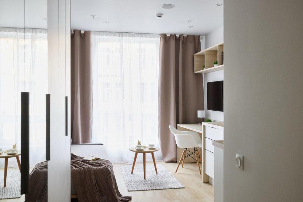 Однокомнатные апартаменты в Центральном районе Санкт-Петербурга, в эпицентре культурной и деловой жизни города. В апартаментах есть всё необходимое для комфортной жизни: раскладной диван , постельное белье страйп-сатин (100% хлопок), шторы blackout с полной защитой от света, кондиционер, ЖК-телевизор со спутниковыми каналами, Wi-Fi, просторное рабочее место, большие гардеробы, зеркала в полный рост, банные халаты, полотенца (банное, среднее, для ног), тапочки, фен, гигиенические принадлежности, собственная кухня, варочная панель, вытяжка с подсветкой рабочей поверхности, холодильник, микроволновая печь, электрический чайник, посуда для приготовления и сервировки блюд, холодильник, стиральная машина, сушилка, утюг и гладильная доска.