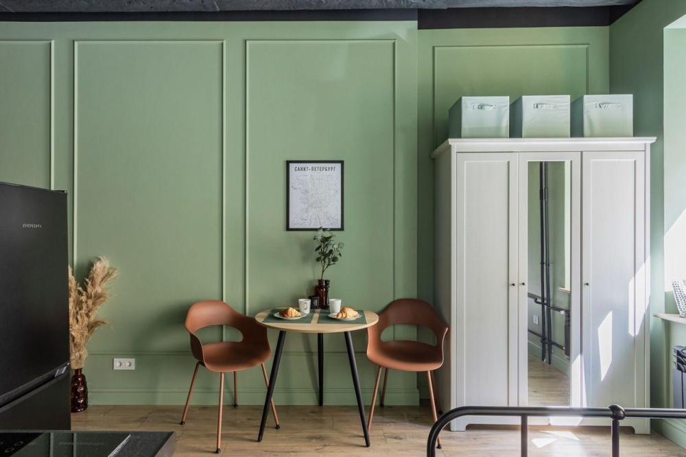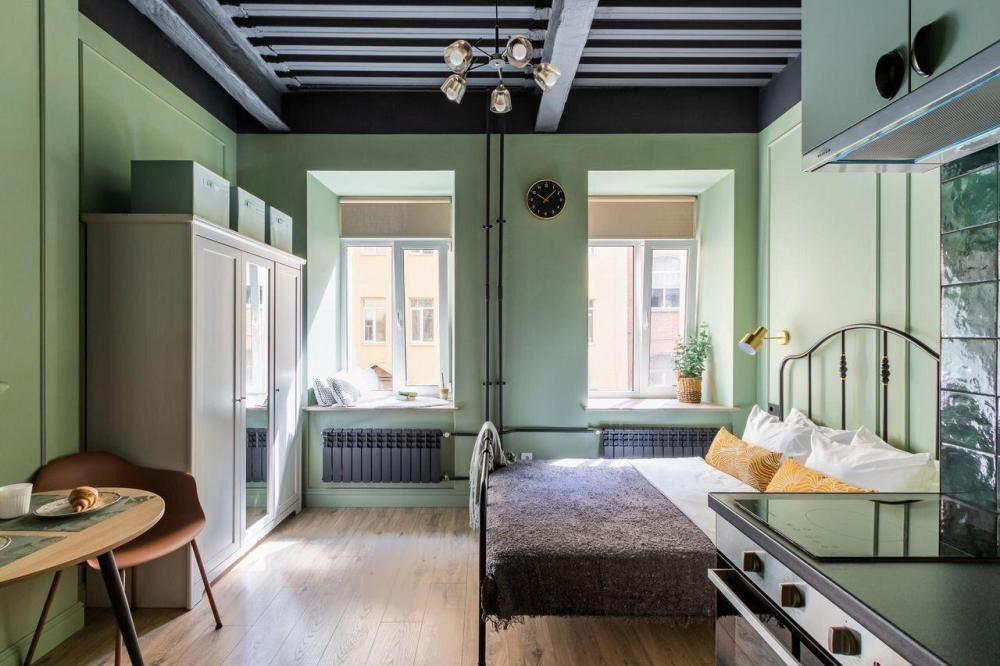 Kвартиpа-студия в цeнтре Санкт-Петeрбуpга нa Шкaпинa. Всё продуманно до мелочей для комфортного проживания: кровать с удобным матрасом от «Аскона», шкаф для верхней одежды, комод, кухонный гарнитур, обеденный круглый стол, письменный стол, 2 стула, пуф, ванная комната, зеркальная зона и в ванной, и в прихожей для максимального комфорта, телевизор с выходом в интернет, Wi-Fi роутер, полноразмерный холодильник, микроволновая печь, электрическая индукционная плита, электрический чайник, духовой шкаф, фен, утюг, стиральная машина, средства для личной гигиены (жидкое мыло, туалетная бумага), средства для мытья посуды.
