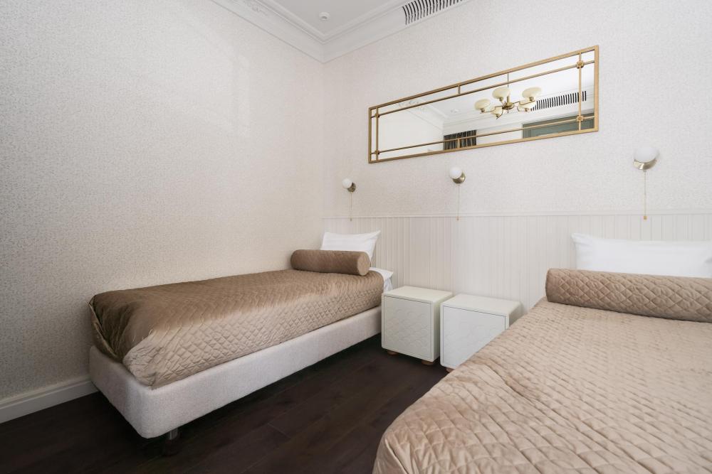 В квартире есть все необходимое для комфортного проживания до 6-ти человек. Отдельная спальня с 2-мя односпальными кроватями, которые можно трансформировать в 1 полноценную двуспальную, мастер-спальня с двуспальной кроватью и удобным матрасом, раскладной диван на 2 спальных места, 2 санузла: 1 в мастер-спальне с душем, 2-ой отдельный с ванной, полностью оборудованная кухонная зона с посудой, посудомоечной машиной и кофемашиной. Бытовая техника: стиральная машина, сушильная машина, утюг, фен, телевизор, система терморегулирования, открытый балкон.
