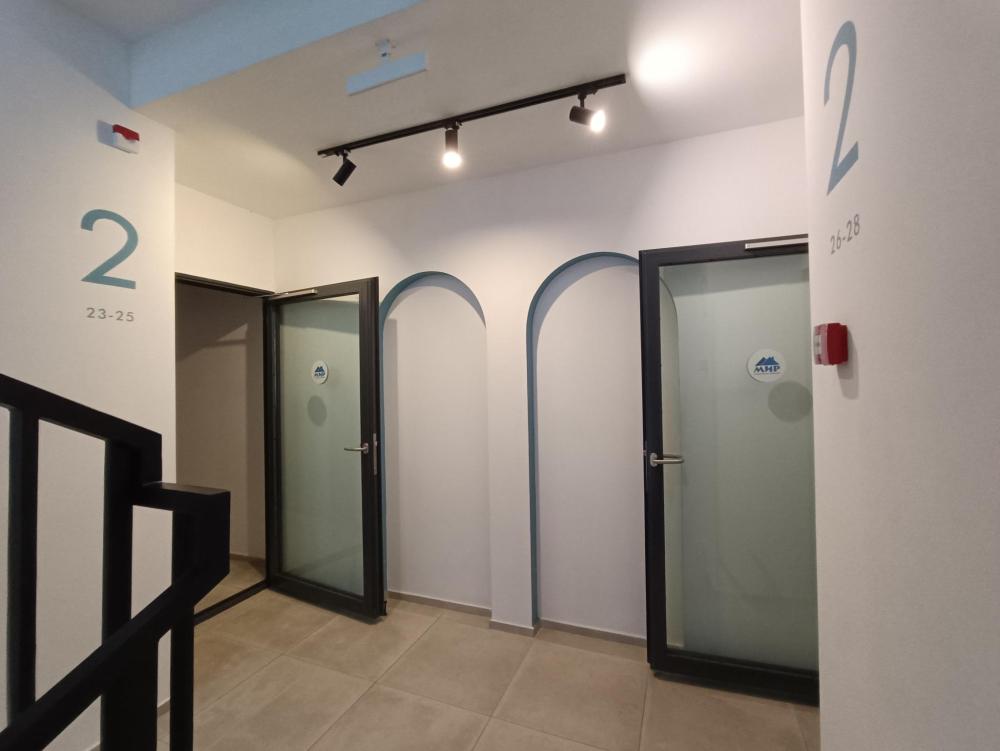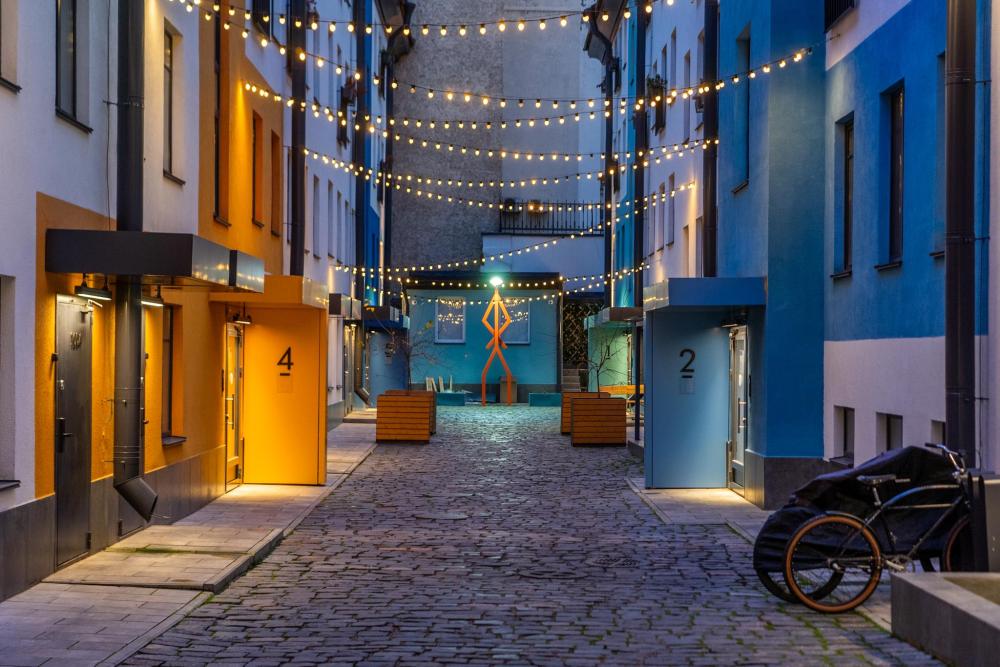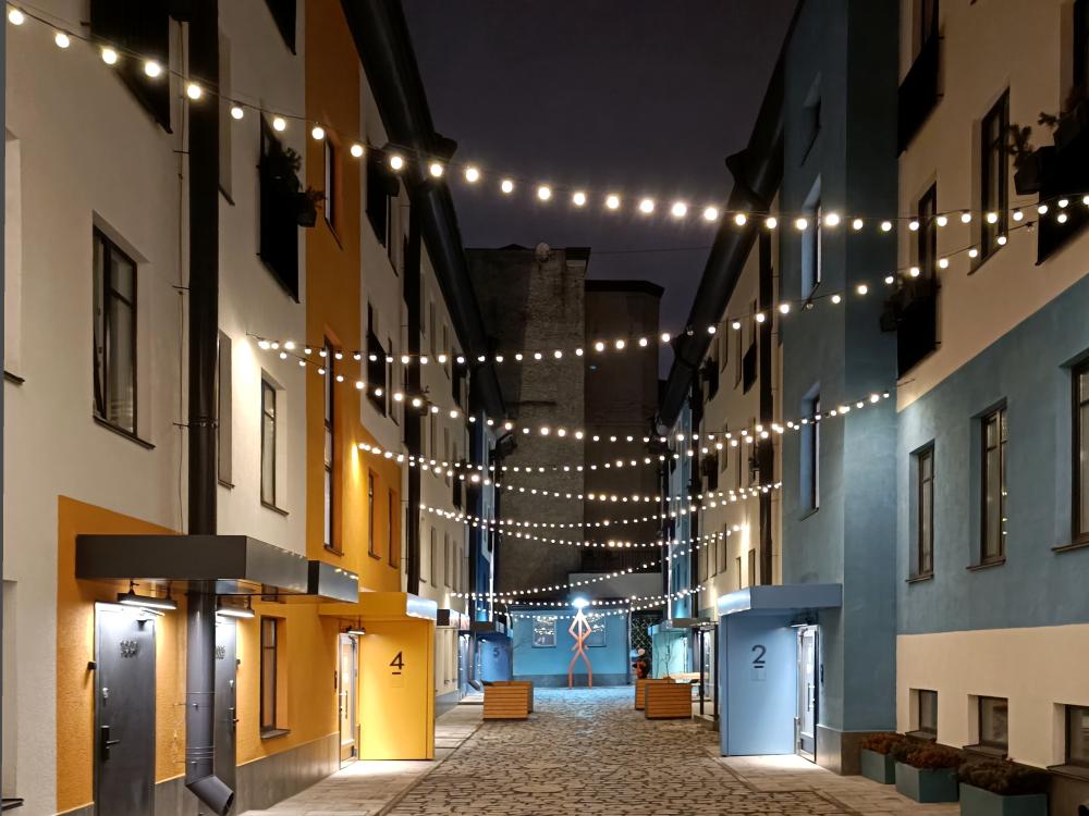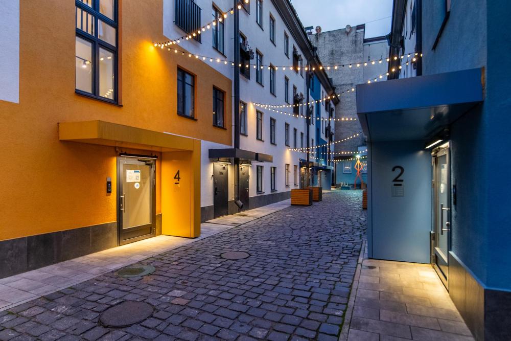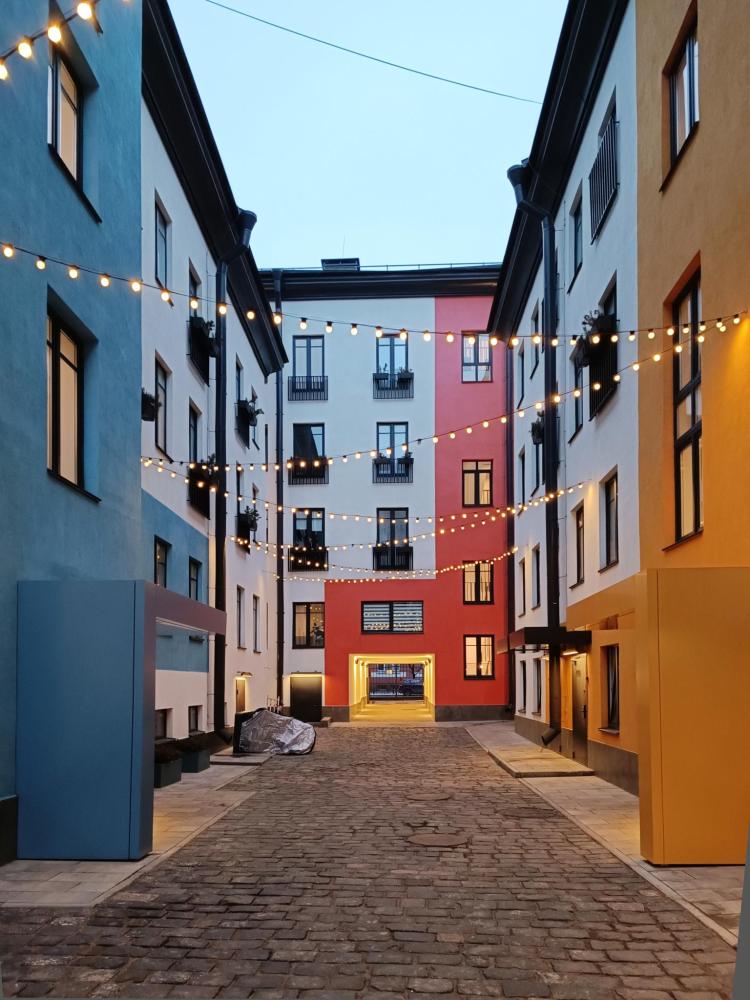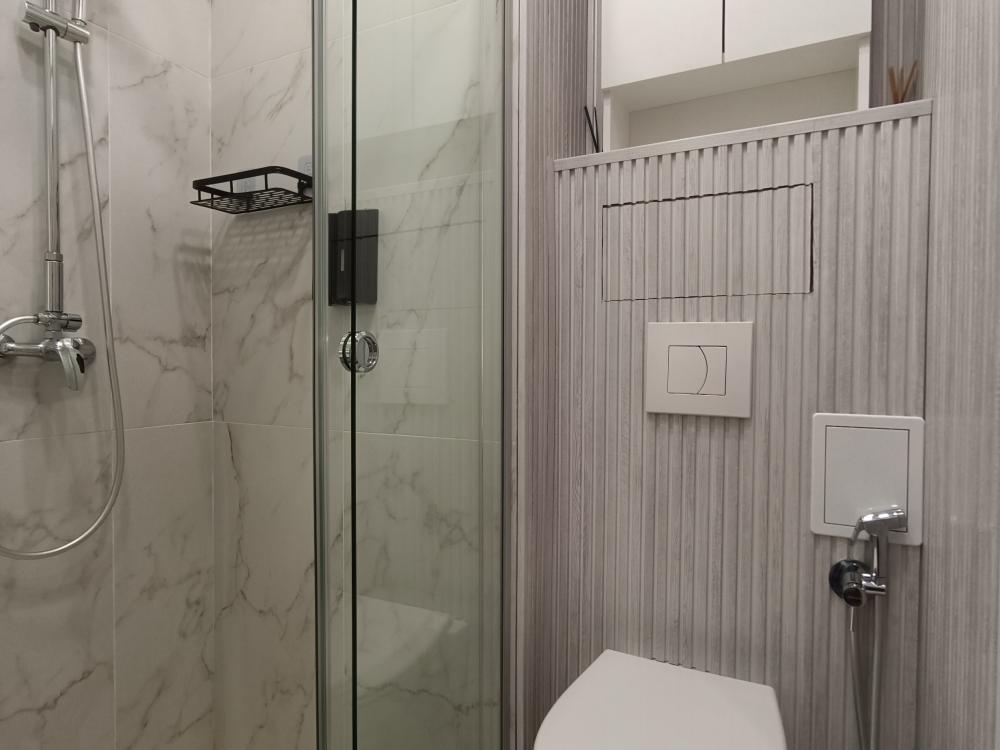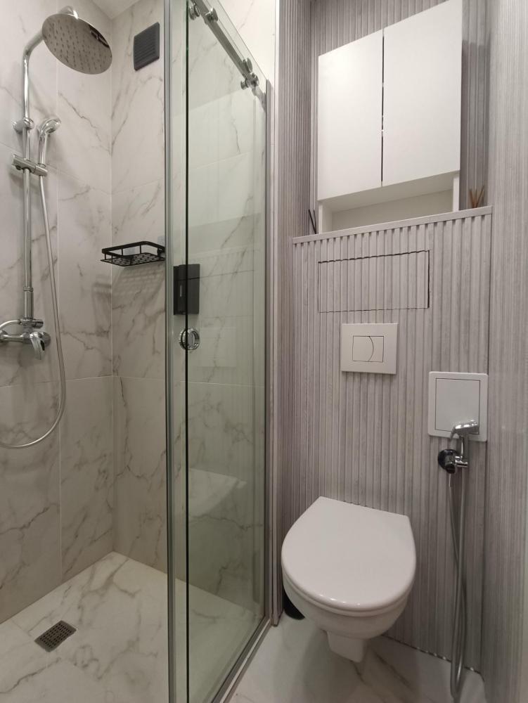 В апартаментах возможно размещение 2 гостей. Спальное место: двуспальная кровать. Кухня оборудована необходимой посудой и техникой: электрическая плита, микроволновка, чайник, холодильник. К услугам гостей также телевизор, стиральная машина, фен, постельное бельё, полотенца, тапочки. Есть отдельное рабочее место.