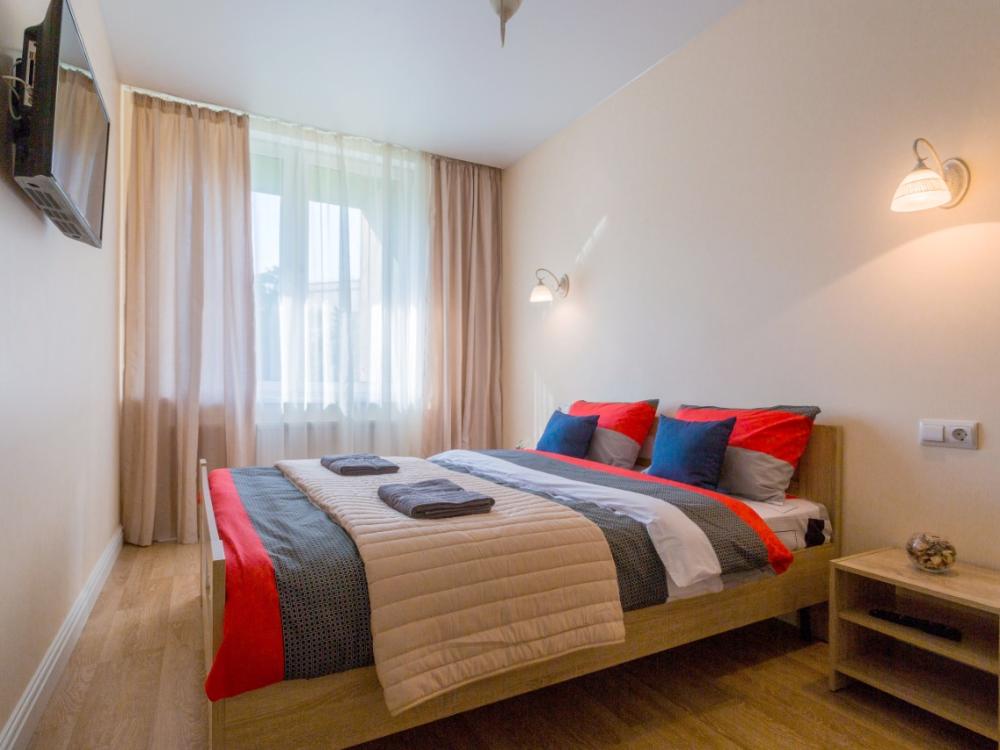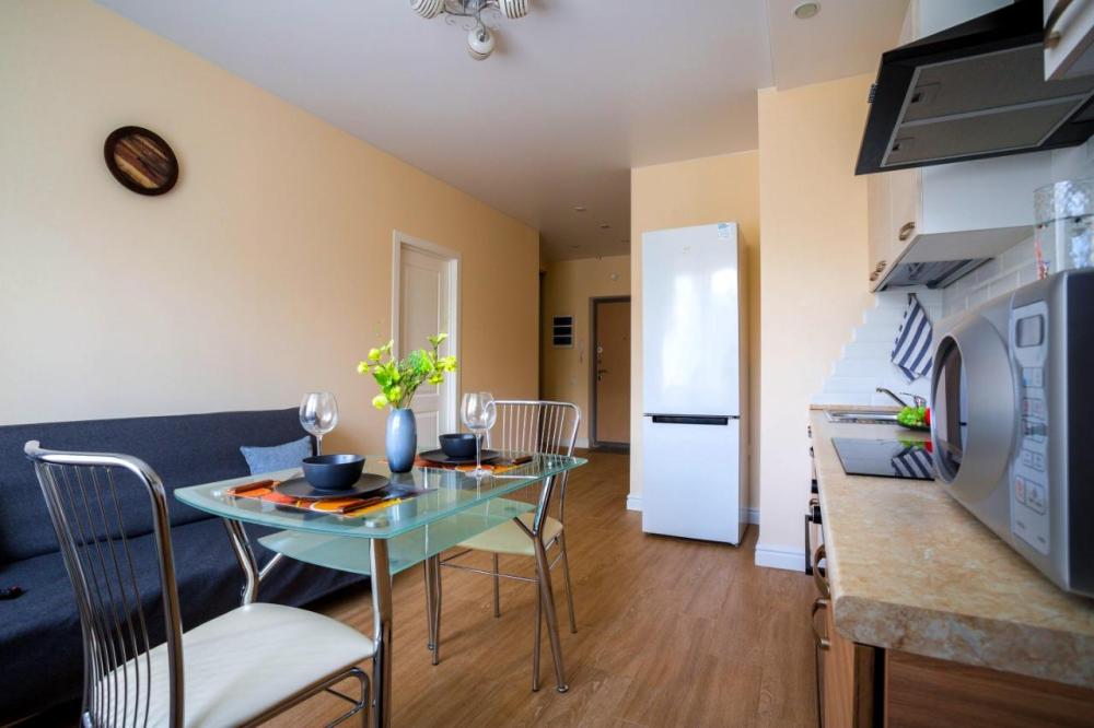 Светлая и уютная квартира, оборудованная всем необходимым для комфортного проживания (мебель и бытовая техника, а также посуда и столовые приборы). Квартира сдается после влажной уборки, гостям предоставляются свежие полотенца и чистое постельное белье. В квартире с комфортом могут разместиться 4 человека, в наличии двуспальная кровать и раскладной диван. Прямо в доме располагается небольшое кафе, где можно приобрести кофе и выпечку. В пешей доступности продуктовые магазины. Двор закрытый, с детской площадкой и лавочками для отдыха. Прямо возле дома находится автобусная остановка, пешая доступность до метро. Командированным предоставляются отчетные документы (данный вопрос необходимо обсуждать до бронирования).