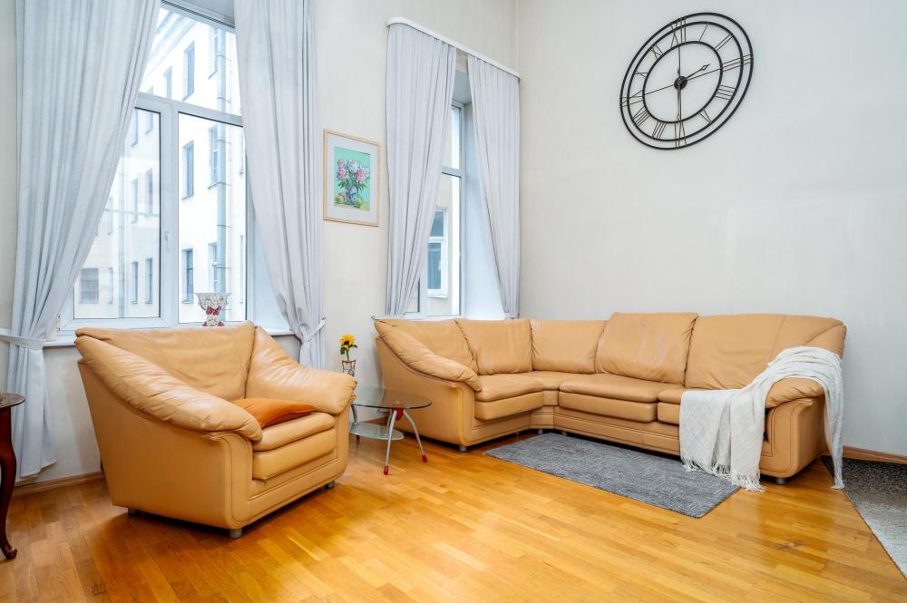 Красивая квартира расположена в историческом центре города Санкт-Петербург, в знаменитом доходном доме И.А. Жадимировского. 1849 года постройки. На Б.Конюшенная д.1. 2 этаж. Серый четырехэтажный дом с закругленным углом прославился два века назад скандалом, в котором была замешана невестка Жадимировского Лавиния. Ее благосклонности добивался Николай I, но Лавиния ответила императору отказом. Пожалуй самое лучшее расположение в Петербурге, Дворцова площадь, Невский проспект, Эрмитаж, Исаакиевский собор все в пешей доступности. Рядом с домом есть несколько скверов и парков. От ст метро Невский проспект 600 метров. Продуктовые магазины 24 часа, рестораны, клубы, кафе и столовые. Комната 1 : Большая двуспальная кровать Комната 2 : Большая двуспальная кровать Комната 3: Двуспальная кровать Гостиная: Двуспальный раскладной диван Вид в красивый тихий двор. Полностью укомплектованная кухня В квартире: Вся бытовая техника (телевизор, стиральная машина, газовая плита с духовкой, посудомоечная машина, чайник, микроволновая печь, холодильник, водонагреватель, утюг, сушилка и фен). Посуда для приготовления пищи, Интернет Wi-Fi, телевидение Комфорт: Предоставляется чистое постельное белье, полотенца и средства гигиены. Индивидуально (Тапочки, Фумигаторы, Вентиляторы) по запросу Можно с детьми