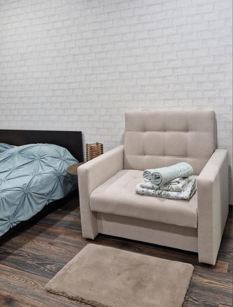 В квартире имеется все необходимое для комфортного проживания: чистое постельное белье (1 комплект на 2 гостей), полотенца по 2 шт на гостя (банное и для лица), одноразовые зубные наборы, одноразовые тапочки, средства гигиены (ватные палочки, ватные диски, шампунь, гель для тела), фен, утюг, чай/кофе одноразовый. Кухня: посуда: тарелки, столовые приборы, чашки, бокалы, нож для открывания, штопор, кастрюли, разделочный доски, сковорода, холодильник- микроволновая печь, варочная панель, чайник. Спальные места: 2, двухспальная кровать (1600*2000), телевизор (smart tv, Цифровое ТВ), Wi-Fi.
