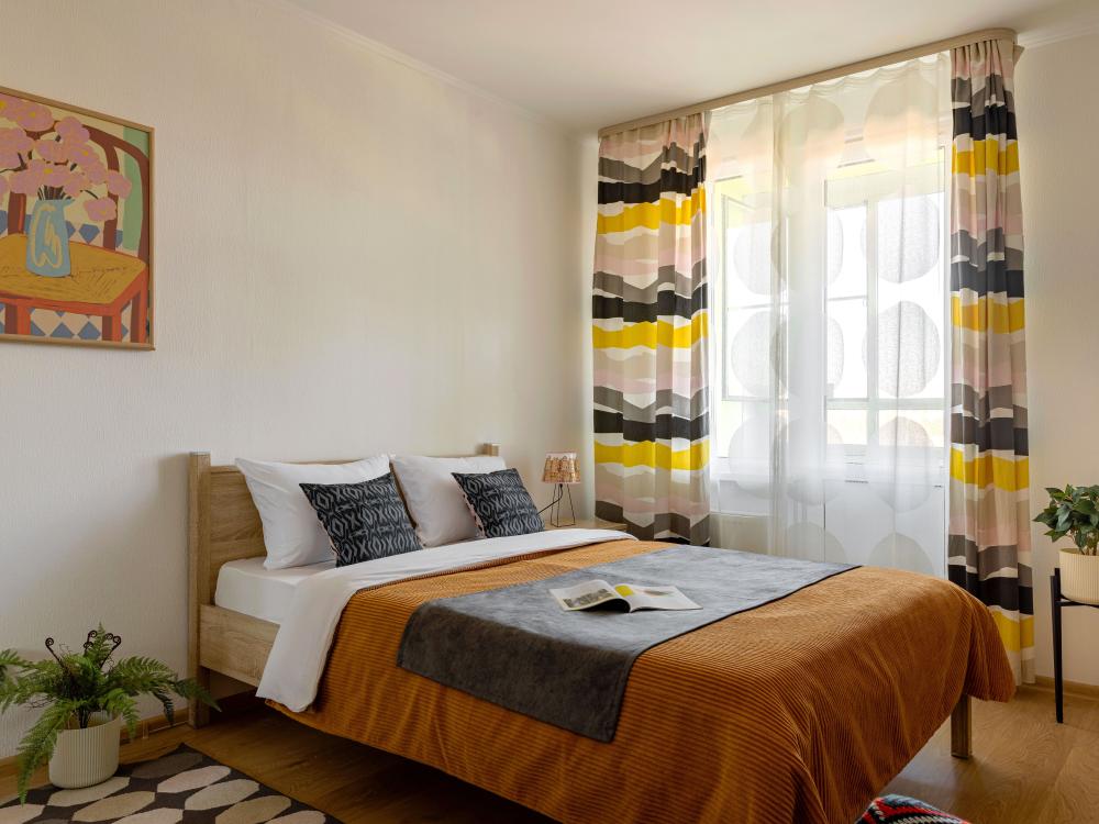 Просторная уютная трехкомнатная квартира в новом доме, имеется вся необходимая для комфортного проживания мебель и бытовая техника, а также посуда и столовые приборы, 2 санузла, 2 лоджии. Сдается после влажной уборки. Гостям предоставляются свежие полотенца и чистое постельное белье. Подойдет для размещения больших компаний или большой семьи. Спальных мест в квартире на 12 человек. 1 комната: двуспальная кровать, двуспальный диван. 2 комната: двуспальная кровать, двуспальный диван, выдвижное кресло. 3 комната: двуспальная кровать, выдвижное кресло. Возле дома расположено несколько торговых центров, кафе, ресторанов и продуктовых магазинов. Двор оборудован детской площадкой. В 8 минут ходьбы Ладожский вокзал и метро (Ладожская), откуда можно быстро добраться до центра города. Также неподалеку находится автобусная остановка.