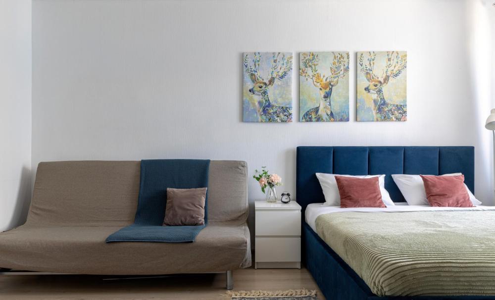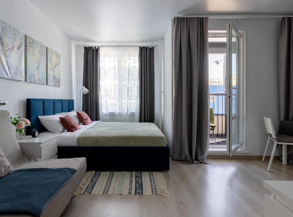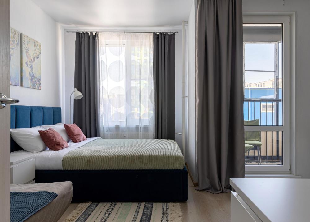 Симпатичная уютная студия, расположена вдалеке от дороги, за окном не шумно. Квартира оборудована всем необходимым для комфортного проживания (мебель и бытовая техника, а также посуда и столовые приборы). Cдается после влажной уборки, гостям предоставляются свежие полотенца и чистое постельное белье. В квартире с комфортом могут разместиться 4 человека, в распоряжении гостей двуспальная кровать и раскладной диван. На территории закрытого жилого комплекса располагаются детская площадка, спортивная площадка, кофейня с выпечкой. В пешей доступности магазины, торговый центр, кафе, рестораны. Рядом есть платная парковка.