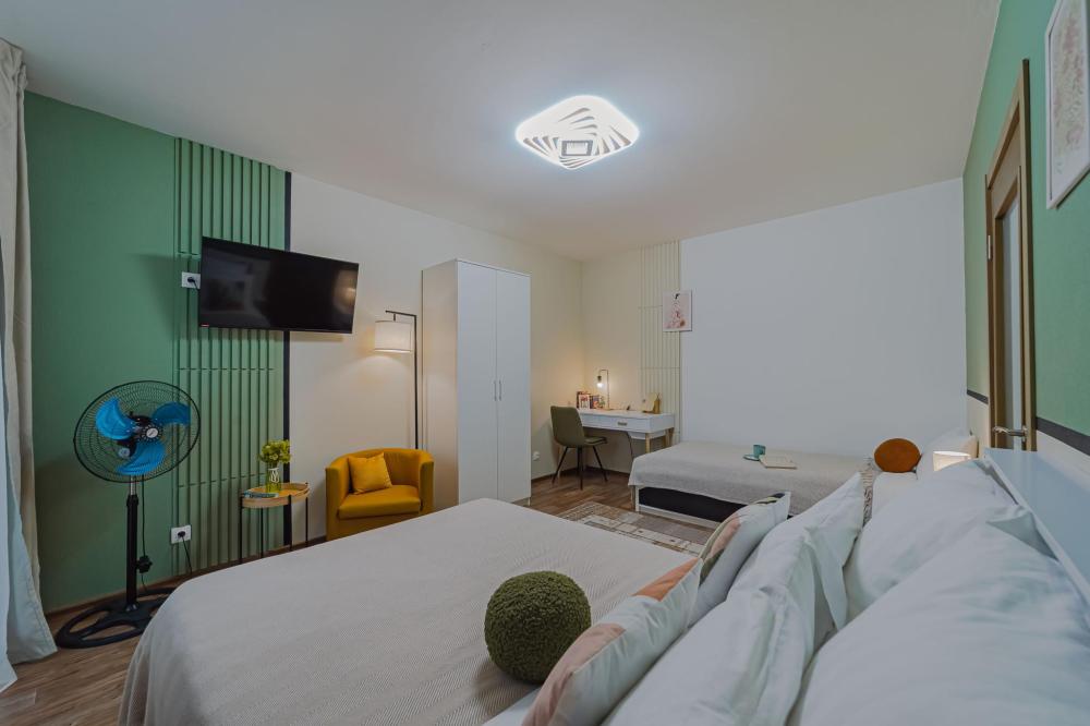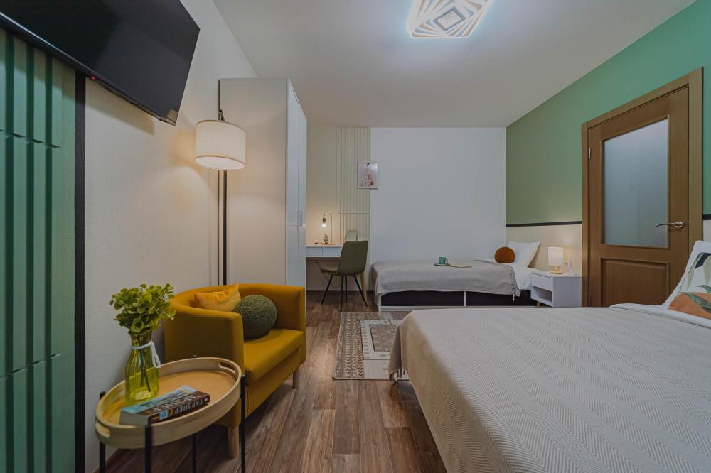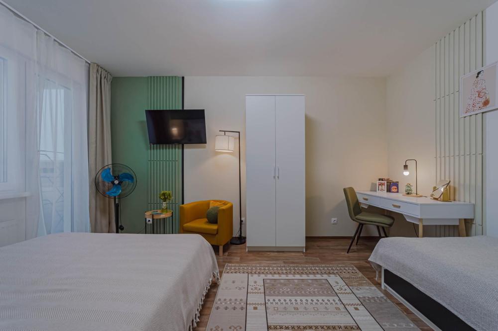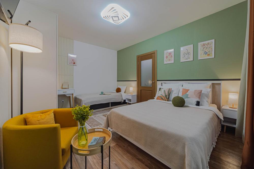 Квартира оснащена всем необходимым для комфорта. Двуспальная кровать 140*200 с ортопедическим матрасом. Односпальная кровать 90*200 также с ортопедическим матрасом. Телевизор со Smart TV и беспроводной интернет Wi-fi. Холодильник, стиральная машина, плита, духовка, вытяжка, посудомоечная машина, микроволновая печь, кофеварка, чайник, утюг, фен, вентилятор. Чистое постельное белье и полотенца. Индивидуальные косметические наборы. Посуда для готовки и сервировки. Зонтики. Яркие эмоции, вкусный чай/кофе/печенюшки в подарок.