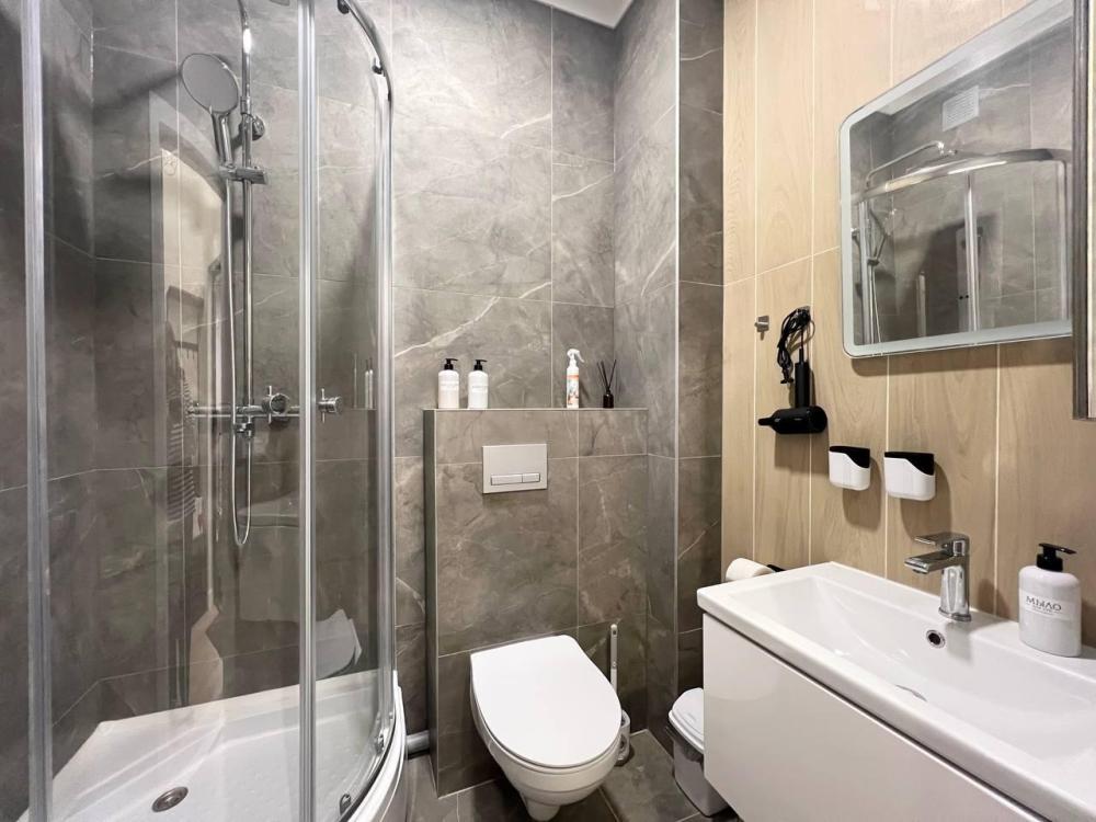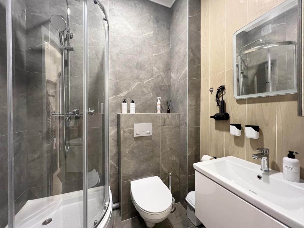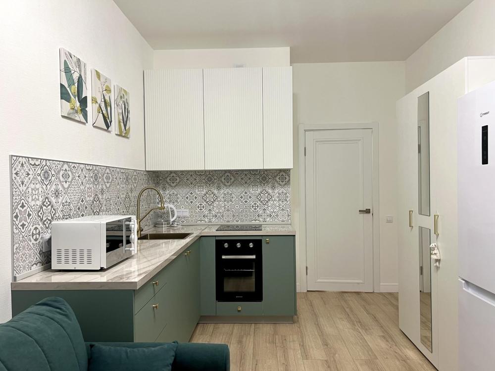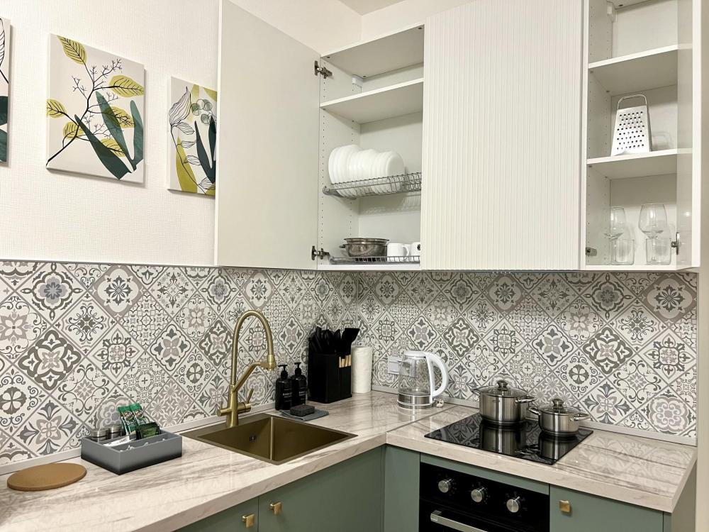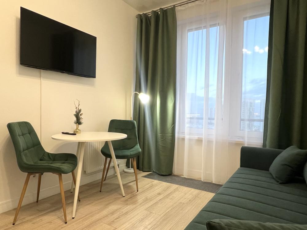 Уютные апартаменты для 2 гостей. В кухонной зоне: микроволновая печь, холодильник, плита, чайник, посуда и столовые приборы на любой случай. Чай, кофе, сахар, соль, конфеты. В ванной комнате: туалет, душ, фен, стиральная машина, набор гигиенических средств, тапочки, полотенца для ног, рук и тела на каждого гостя. В местах отдыха: постельное белье на каждого гостя, ЖК телевизор со Smart TV, высокоскоростной Wi-Fi в номере бесплатно, шторы блэкаут.
