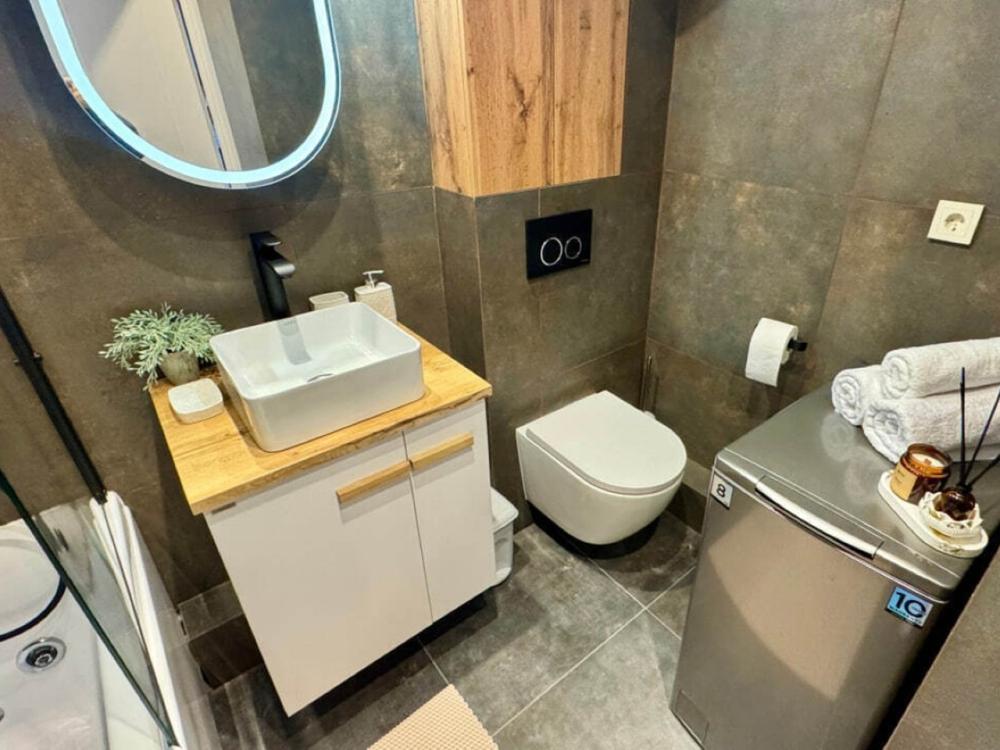 В квартире есть все для вашего комфорта: Двуспальная кровать 160х200 с ортопедическим матрасом "Аскона" —сладкие сны гарантированы; Удобный и мягкий диван —для приятных вечеров или дополнительных гостей; Белоснежное и свежее постельное белье и полотенца отельного типа и премиального бренда Togas —словно облако нежности; Smаrt ТV и высокоскоростной Wi-Fi —оставайтесь на связи или расслабляйтесь с любимыми фильмами.; Просторная кухня-гостиная оборудована всей необходимой техникой (микроволновая печь, посудомоечная машина, холодильник, варочная панель, чайник, посуда для готовки и сервировки, приборы) — готовьте любимые блюда или наслаждайтесь завтраками; В качестве приятного бонуса приветственный набор продуктов — чай, кофе, сахар - чтобы ваше утро было особенным; Атмосферный панорамный балкон с мягкими креслами для утренних кофе и спокойных вечеров; Ванная комната с гидромассажной ванной и подсветкой, стиральной машиной, феном; Cушилка для одежды, утюг, гладильная доска; Бойлер на случай отключения горячей воды в летний период; 2 кондиционера; Гигиенические принадлежности (шампунь, гель для душа, бальзам, жидкое мыло, ватные палочки, ватные диски, мицеллярная вода, зубные наборы, стиральный порошок).