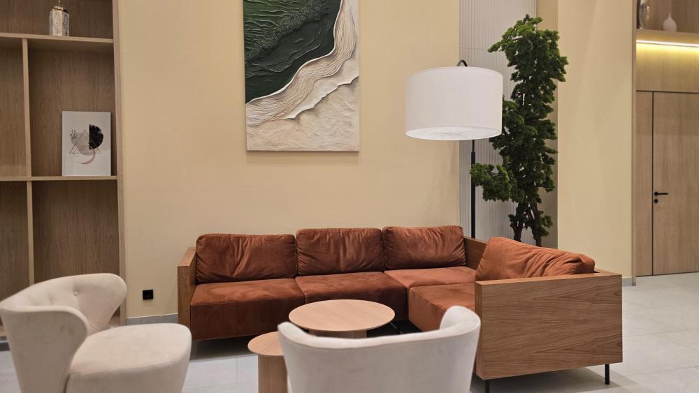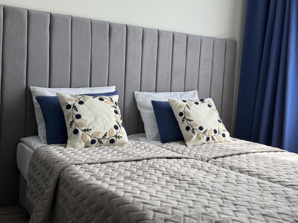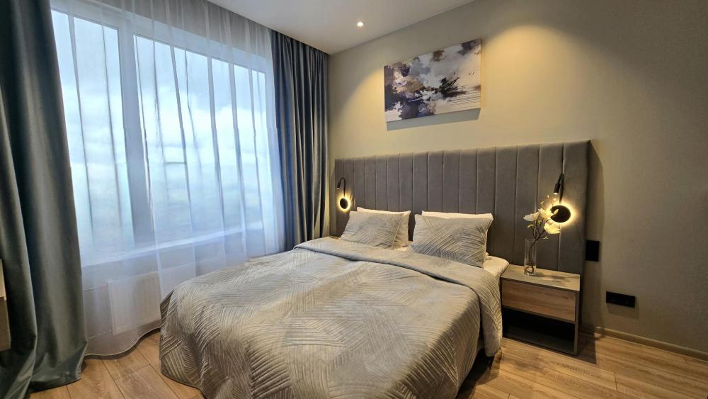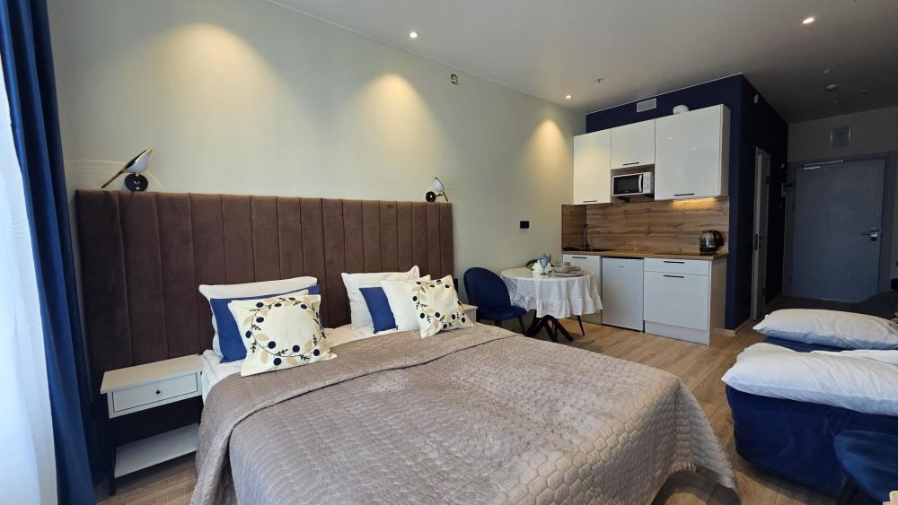 Стильная студия в апарт-отеле Ladozhskiy Avenir. Уют и комфорт: cвежее белье, ортопедические матрасы, полностью оборудованная кухня (холодильник, плита, микроволновка, посуда, чай/кофе), стиральная машина, утюг, гладильная доска, рабочий стол и бесплатный Wi-Fi и кабельное ТВ. Ванная комната с душевой кабиной (полотенца, шампунь, гель, фен, мицеллярная вода).