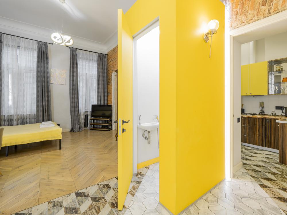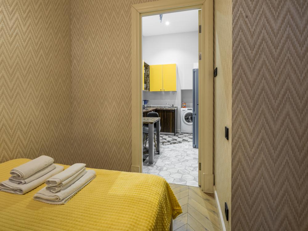 Просторная квартира 42 м² с умной планировкой: Идеальное решение для семьи или компании друзей до 4 человек. Квартира грамотно разделена на несколько зон, обеспечивая комфорт и уединение для всех гостей. ТВ-тумба и Smart TV (подборка фильмов о Петербурге). Обеденная зона на 4 персоны. Большой ретро-шкаф для хранения вещей и техники (утюг, фен имеются). Полноценная кухня: Вся необходимая техника: холодильник, микроволновка, чайник, посуда, столовые приборы, чай, кофе, сахар. Включено: Постельное бельё, полотенца, тапочки, финальная уборка, чай, кофе, сахар, шампуни, гель для душа.