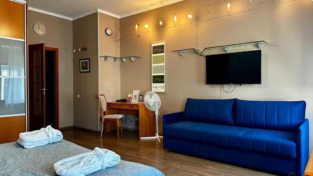 Просторные апартаменты, оборудованные всем необходимым для комфортного проживания. В апартаментах: уютная кухня со встроенной техникой и всем необходимым для приготовления пищи, санузел, оснащенный душевой кабиной с подогревом пола, и полным набором гостиничной парфюмерии. Просторная комната-спальня с двуспальной кроватью и раскладным креслом. SMART ТВ.