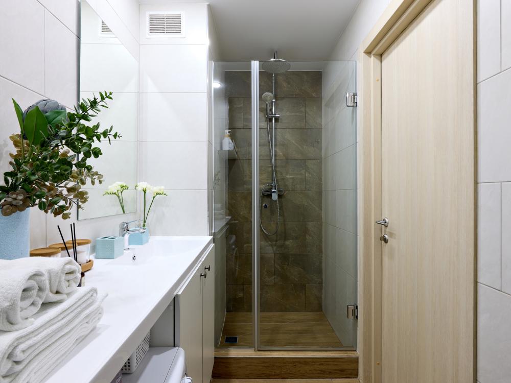 В апартаментах со стильным дизайнерским решением комфортно могут разместиться двое гостей. Кухня полностью оборудована для проживания - мы встречаем гостей с полным комплектом посуды для приготовления и употребления пищи и современной бытовой техникой. Комфортная обеденная зона, за которой можно расположиться как за романтическим ужином, так и за работой с ноутбуком. Двуспальная кровать 160х200 с ортопедическим матрасом и шторы Black-out– то, что нужно, чтобы выспаться и отлично отдохнуть. Студия оснащена вместительной зоной хранения, стиральной машиной, бойлером, полотенцесушителем, феном, гладильная доска и утюг также находятся в апартаментах. Белоснежное постельное белье, комплект полотенец на каждого гостя и гигиенический набор (гель для душа, шампунь, кондиционер, ватные диски и палочки). Скоростной Wi-fi и ТВ с функцией SMART.