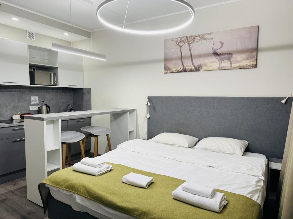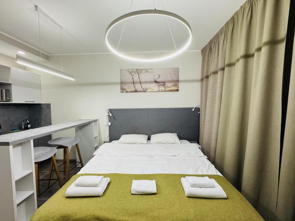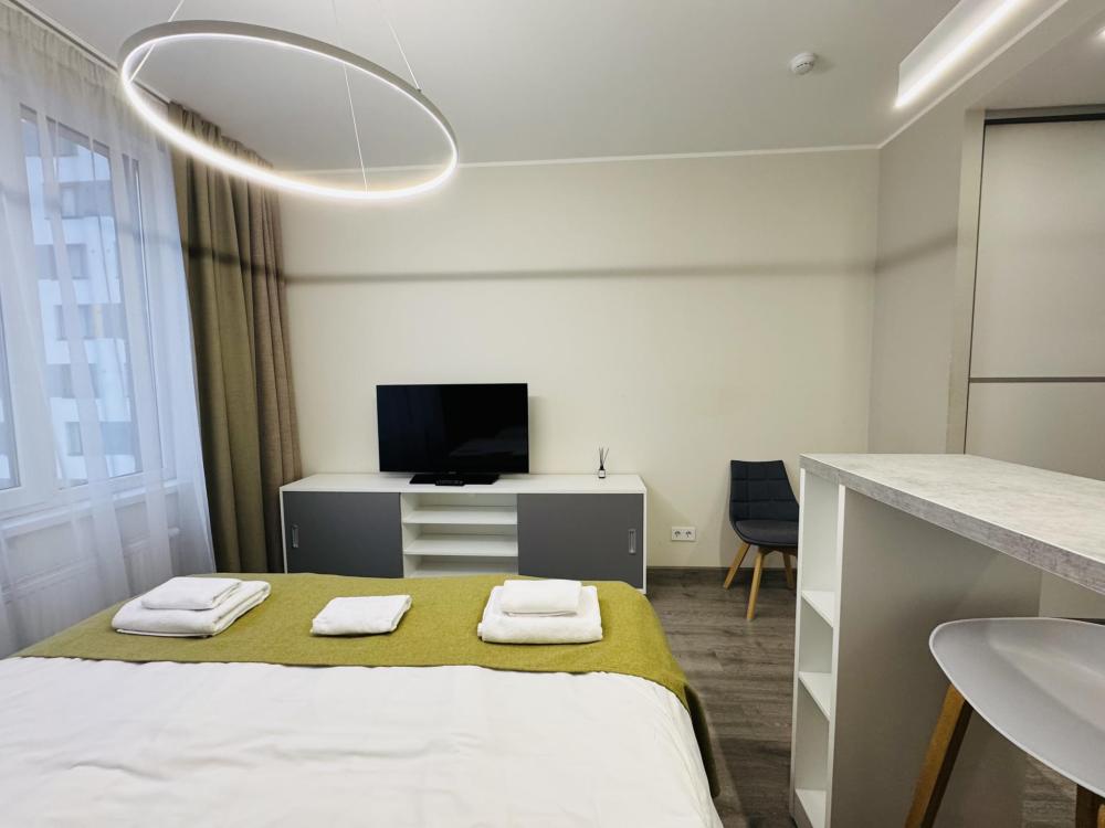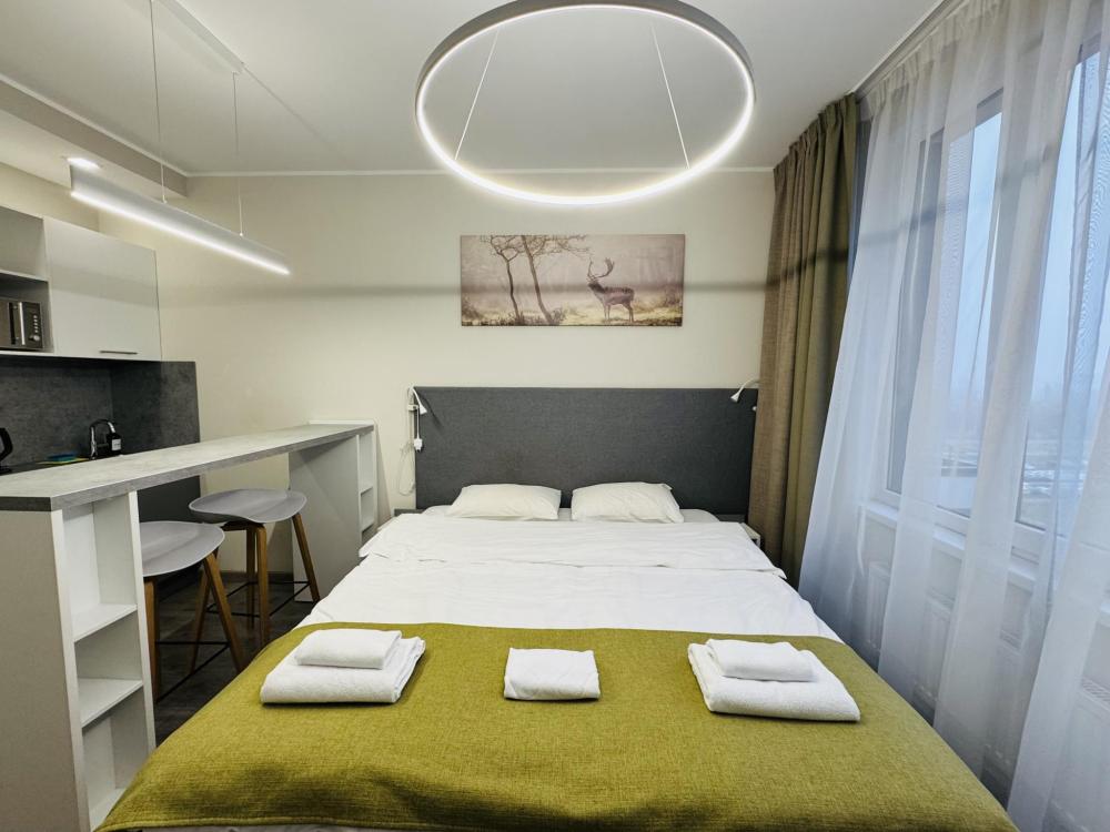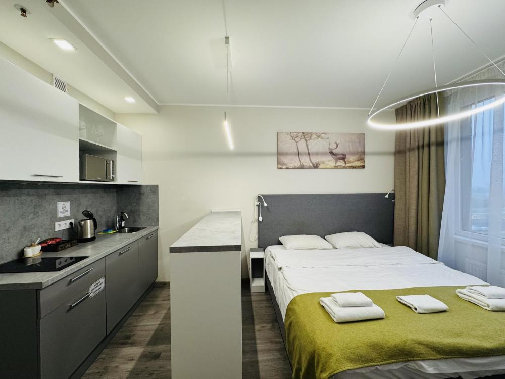 Уютная и светлая квартира студия в 2-ух минутах ходьбы от метро Купчино. Для комфортного проживания в квартире имеется: двуспальная кровать; свежее постельное белье и полотенца; утюг, гладильная доска; телевизор smart tv; высокоскоростной интернет wi-fi; на кухне- чайник, холодильник, микроволновка, варочная панель; чай, кофе.