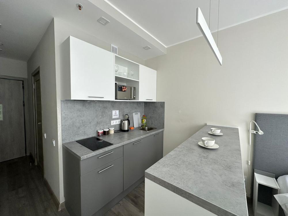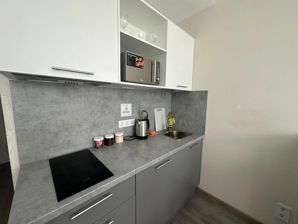Уютная и светлая квартира студия в 2-ух минутах ходьбы от метро Купчино. Для комфортного проживания в квартире имеется: двуспальная кровать; свежее постельное белье и полотенца; телевизор smart tv; на кухне- чайник, холодильник, микроволновка, варочная панель;.