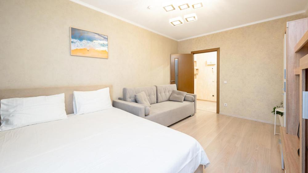 Солнечная и просторная однокомнатная квартира рядом с апарт отелем In2it понравится любому, кто ищет тишину и покой – после долгой прогулки по городу или напряженной работы. В квартире новая мебель и свежий ремонт, царят уют и комфорт. Любителей вкусно готовить ждет функциональная кухня со всей необходимой техникой и посудой, а те, кто по вечерам предпочитает отдыхать - могут приятно провести вечер на комфортной двуспальной кровати за просмотром большого плазменного телевизора.Также в апартаментах: двуспальная кровать 160х200, большой двуспальный диван с возможным размещением 4 гостей, бесплатный WI-Fi и техника (ЖК-телевизор, стиральная машина, электрическая плита, холодильник, микроволновая печь, электрочайник), посуда и кухонные принадлежности для приготовления и приема пищи. Бесплатная парковочная зона у дома. В доме есть лифт.