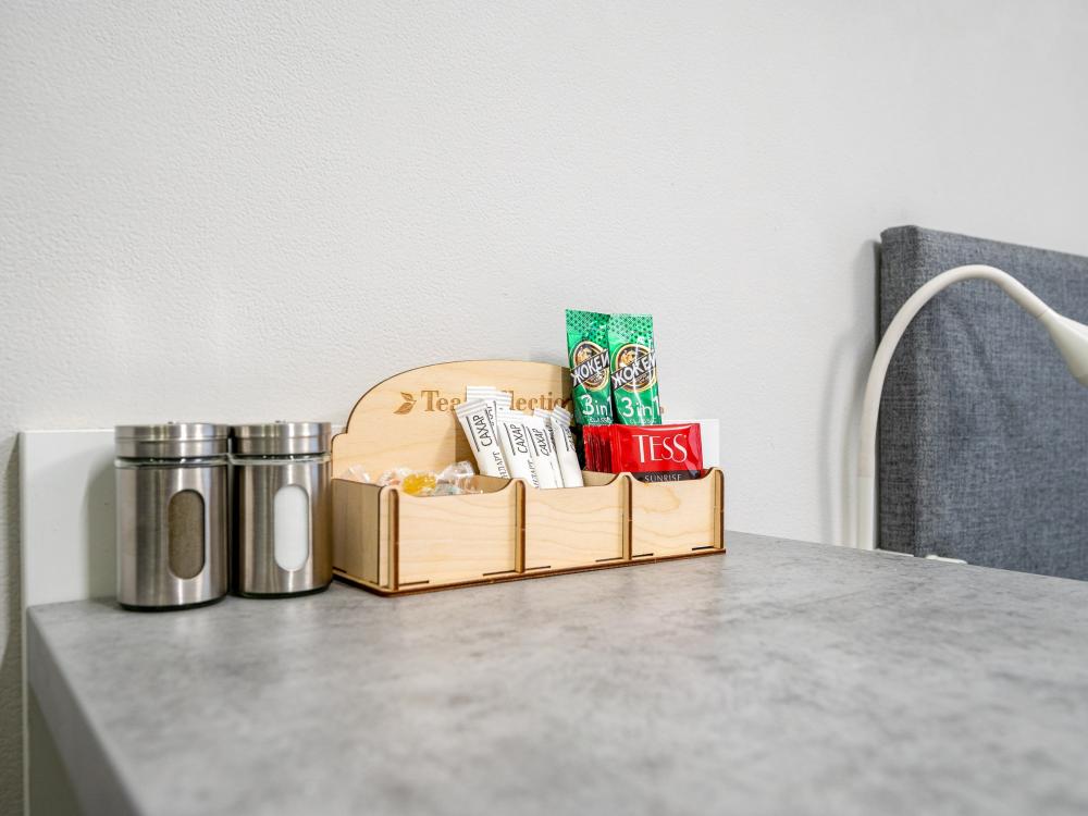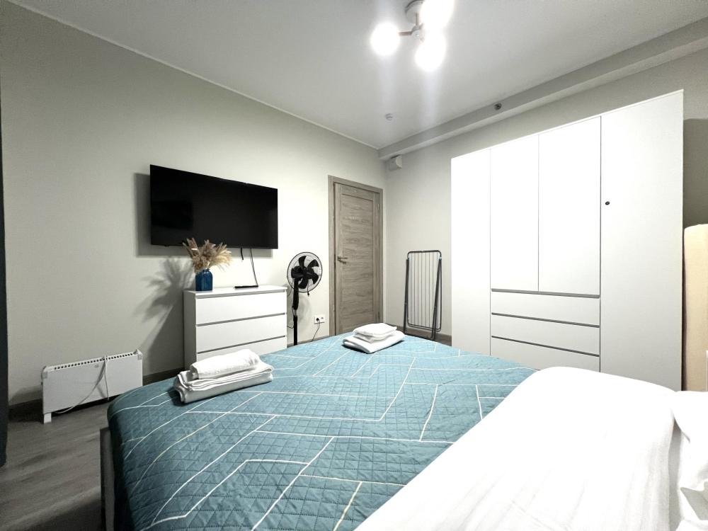 Квартира полностью соответствует всем фото, в ней вас ждут: двуспальная кровать с толстым матрасом, комфортная оборудованная кухня, обеденный стол и стулья, душ и всё необходимое, большой шкаф для хранения вещей. В кухонной зоне: микроволновая печь, посудомоечная машина, холодильник, чайник, посуда и столовые приборы на любой случай. Чай, кофе, сахар, соль, конфеты. В ванной комнате: туалет, душ, стиральная машина, фен, утюг, набор гигиенических средств, тапочки, полотенца для ног, рук и тела на каждого гостя. В комнатах: постельное белье на каждого гостя, ЖК телевизор с YouTube и Smart TV, высокоскоростной Wi-Fi в номере бесплатно.