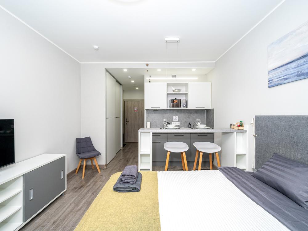 Новые стильные и просторные апартаменты с собственной кухней в апарт-отеле In2It построенном в 2023 году. Уникальное расположение всего в 50 метрах от входа в метро, позволяет добраться за 30 минут до любой точки города. После каждого выселения проводим качественную уборку, стелим свежее постельное белье и полотенца. У нас очень чисто! Расположение: Всего 50 метров до метро Купчино, крупных торговых центров, ресторанов и магазинов. До выезд на КАД и ЗСД - 5 мин . До аэропорта Пулково, Форума, центра города - 20 мин. на авто. Рядом супермаркет Вкусвилл, Реалъ, кофейня КофеVarka, аптека Ваша № 1, банкомат Альфа-банк Комфортное размещение для 2 человек: - двуспальная кровать (160х200) Квартира полностью соответствует всем фото. В ней вас ждут: В кухонной зоне: микроволновая печь, плита, холодильник, чайник, посуда и столовые приборы на любой случай. Чай, кофе, сахар, соль, конфеты. В ванной комнате: туалет, душ, стиральная машина, фен, утюг, набор гигиенических средств, тапочки, полотенца для ног, рук и тела на каждого гостя. В местах отдыха: постельное белье на каждого гостя, ЖК телевизор со Smart TV, высокоскоростной Wi-Fi в номере бесплатно, рабочее место с дополнительным освещением, прикроватные тумбы. Парковка: - Бесплатная у дома - Платная крытая парковка на территории: 1000 руб/сутки Для фирм и командировочных: - предоставляем любой комплект отчетных документов (доставка оригиналов доп. плата); - принимаем оплату по безналу; - сотрудничаем с посредниками / тур. фирмами. Условия проживания: - Заезд после 15:00, выезд до 12:00, другое время обсуждается дополнительно. При бронировании в день заселения, время заезда может измениться! - Мы используем дистанционное заселение. Вы сможете заехать и выехать КРУГЛОСУТОЧНО. - До, или сразу же в момент заселения заключается электронный договор, необходимы паспорта проживающих. - При заезде берется залог 3000 р., возвращается в день выезда. Запрещено: - Шуметь после 23:00 - Устраивать вечеринки. - Курить в квартире! Скидки от 5% до 15% при длительном проживании! При бронировании после 22:00 на ближайшую ночь, заселение возможно только на следующий день, с 9:00. Мы оперативно отвечаем на звонки и сообщения с 9.00 до 23.00 Будем очень рады видеть Вас среди наших гостей. Постараемся превзойти Ваши ожидания!