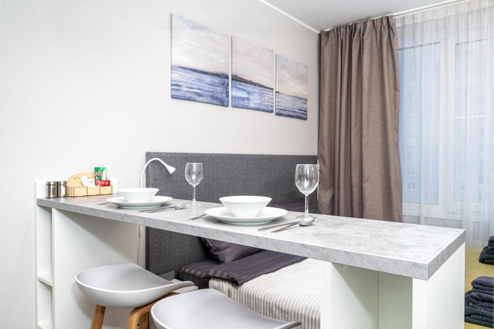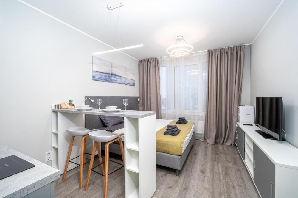 Новая стильная и просторная квартира с большими окнами и собственной кухней. Уникальное расположение всего в 50 метрах от входа в метро, позволяет добраться за 30 минут до любой точки города. После каждого выселения проводим качественную уборку, стелим свежее постельное белье и полотенца. У нас очень чисто! Расположение: Всего 50 метров до метро Купчино, крупных торговых центров, ресторанов и магазинов. До выезд на КАД и ЗСД - 5 мин . До аэропорта Пулково, Форума, центра города - 20 мин. на авто. Рядом супермаркет Вкусвилл, Реалъ, кофейня КофеVarka, аптека Ваша № 1, банкомат Альфа-банк Комфортное размещение для 2 человек: - двуспальная кровать (160х200) Квартира полностью соответствует всем фото. В ней вас ждут: - В кухонной зоне: фильтр для воды, микроволновая печь, плита, холодильник, чайник, посуда и столовые приборы на любой случай. Чай, кофе, сахар, соль, конфеты. - В ванной комнате: туалет, душ, стиральная машина, фен, утюг, набор гигиенических средств, тапочки, полотенца для ног, рук и тела на каждого гостя. - В местах отдыха: кондиционер, постельное белье на каждого гостя, ЖК телевизор со Smart TV, высокоскоростной Wi-Fi в номере бесплатно, зеркало в полный рост, шторы блэкаут. Парковка: - Бесплатная у дома - Платная крытая парковка на территории: 1000 руб/сутки Для фирм и командировочных: - предоставляем любой комплект отчетных документов (доставка оригиналов доп. плата); - принимаем оплату по безналу; - сотрудничаем с посредниками / тур. фирмами. Условия проживания: - Заезд после 15:00, выезд до 12:00, другое время обсуждается дополнительно. При бронировании в день заселения, время заезда может измениться! - Мы используем дистанционное заселение. Вы сможете заехать и выехать КРУГЛОСУТОЧНО. - До, или сразу же в момент заселения заключается электронный договор, необходимы паспорта проживающих. - При заезде берется залог 3000 р., возвращается в день выезда. Запрещено: - Шуметь после 23:00 - Устраивать вечеринки. - Курить в квартире! Скидки от 5% до 15% при длительном проживании! При бронировании после 22:00 на ближайшую ночь, заселение возможно только на следующий день, с 9:00. Мы оперативно отвечаем на звонки и сообщения с 9.00 до 23.00 Будем очень рады видеть Вас среди наших гостей. Постараемся превзойти Ваши ожидания! Гости находят нас по следующим фразам: I Rent Apart, снять квартиру у метро, квартира близко к метро, квартира рядом с КАД, снять квартиру у КАД, квартира рядом с ЗСД, снять современную квартиру, квартира с развитой инфраструктурой, снять квартиру рядом с аэропортом у собственника, квартира для командировочных рядом с аэропортом, IRentApart, снять квартиру для романтических встреч, квартира для утро невесты, снять квартиру на двоих, снять квартиру на троих, снять квартиру с местом для ребенка; лучшие квартиры в аренду, лучшие квартиры в СПБ, лучшие квартиры в Питере, квартира на сутки, снять квартиру суточно, снять посуточно, аренда студии, снять квартиру командировочному, однокомнатная квартира Санкт-Петербург, посуточная аренда квартир, квартиры СПб посуточно, посуточная аренда квартир, снять квартиру посуточно, арендовать квартиру от собственника, аренда квартиры в Санкт-Петербурге, посуточные квартиры, снять квартиру на короткий срок, снять квартиру посуточно без комиссии