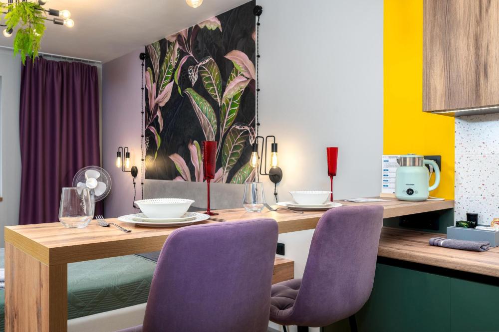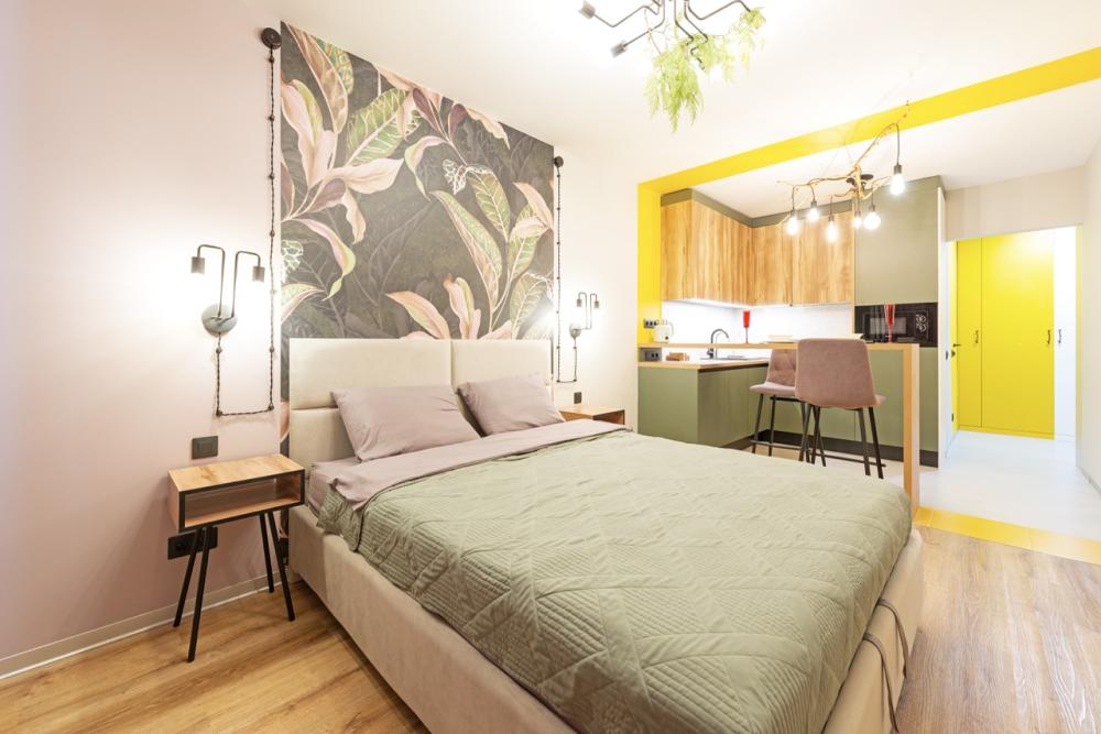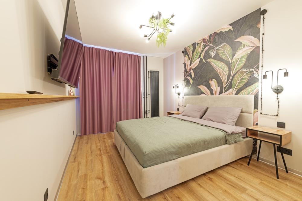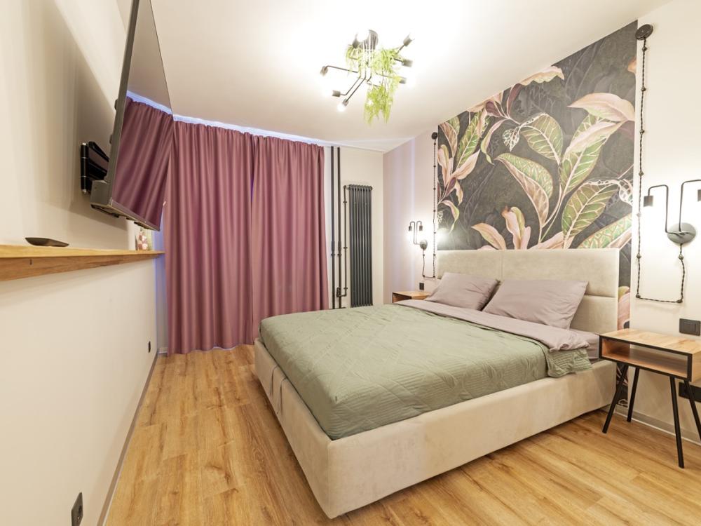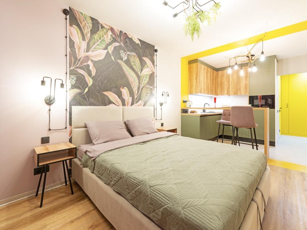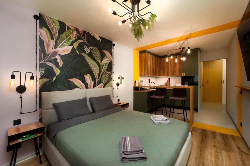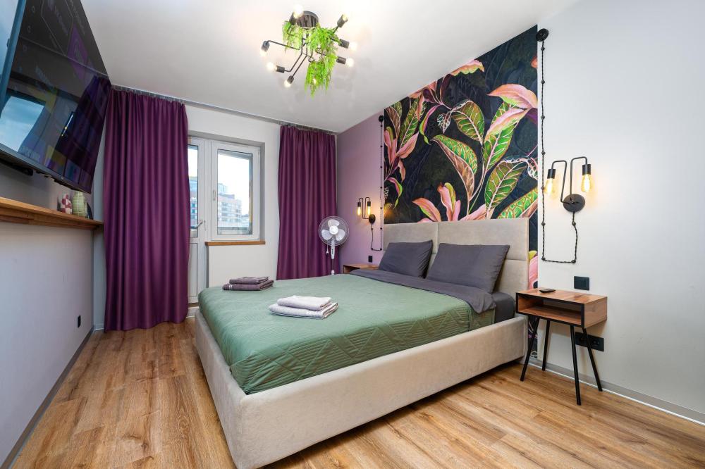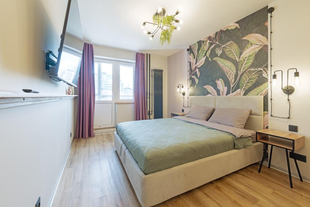 Комфортное размещение для 2 человек: двуспальная кровать (160х200). Квартира полностью соответствует всем фото. В кухонной зоне: микроволновая печь, холодильник, индукционная плита, чайник, посудомоечная машина, посуда и столовые приборы. Чай, кофе, сахар, соль, конфеты. В ванной комнате: туалет, душ, стиральная машина, фен, утюг, набор гигиенических средств, тапочки, полотенца для ног, рук и тела на каждого гостя. В местах отдыха: постельное белье на каждого гостя, ЖК телевизор со Smart TV, высокоскоростной Wi-Fi в номере бесплатно, шторы блэкаут.