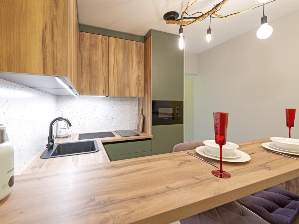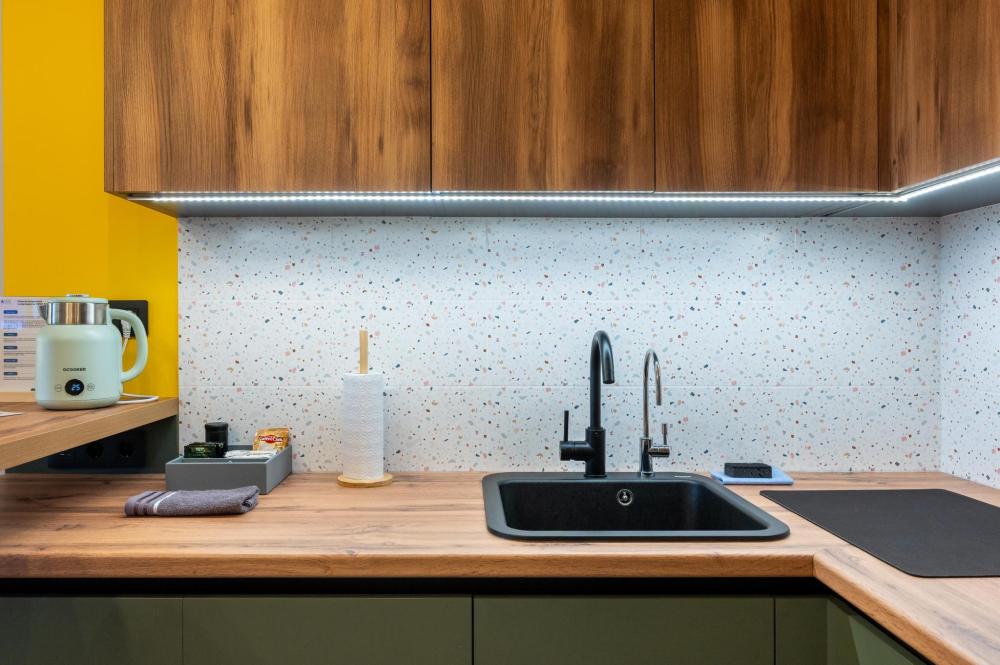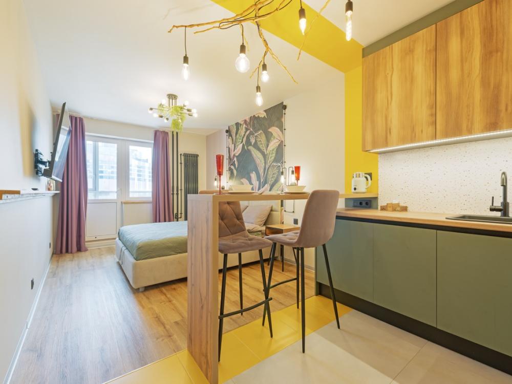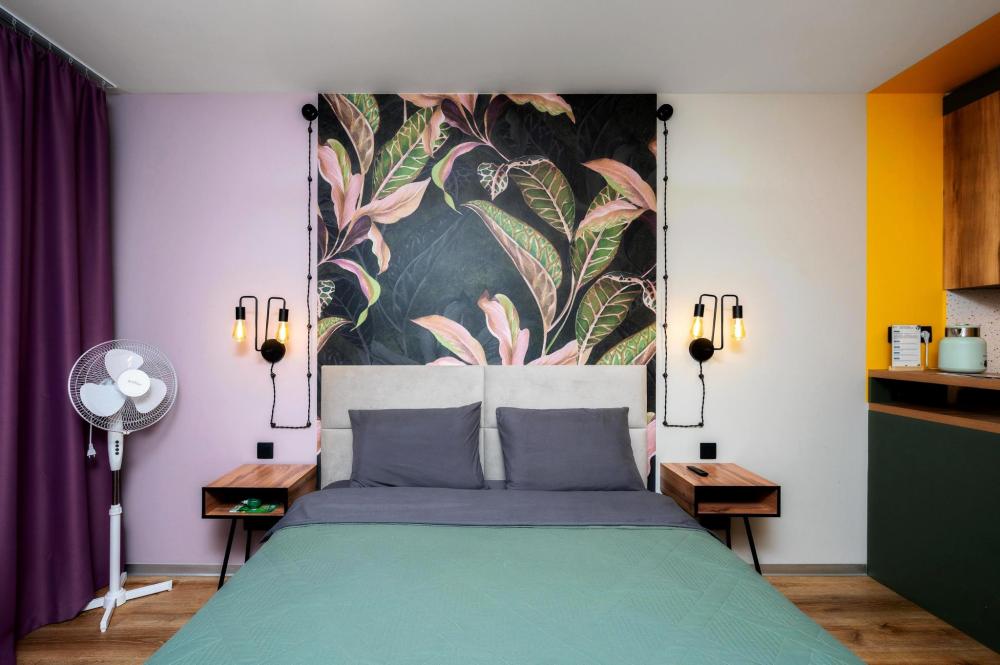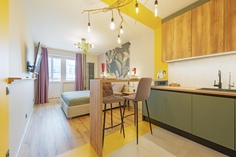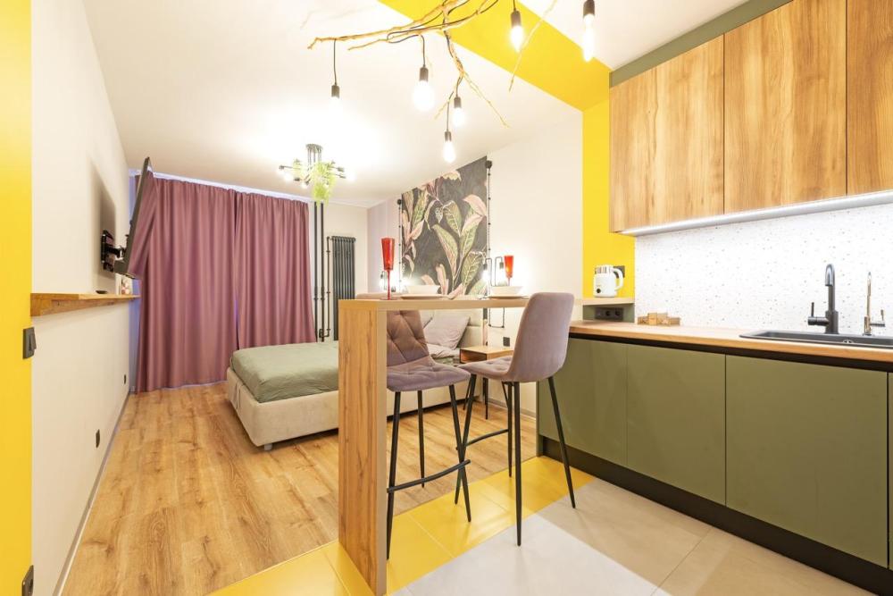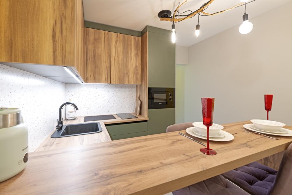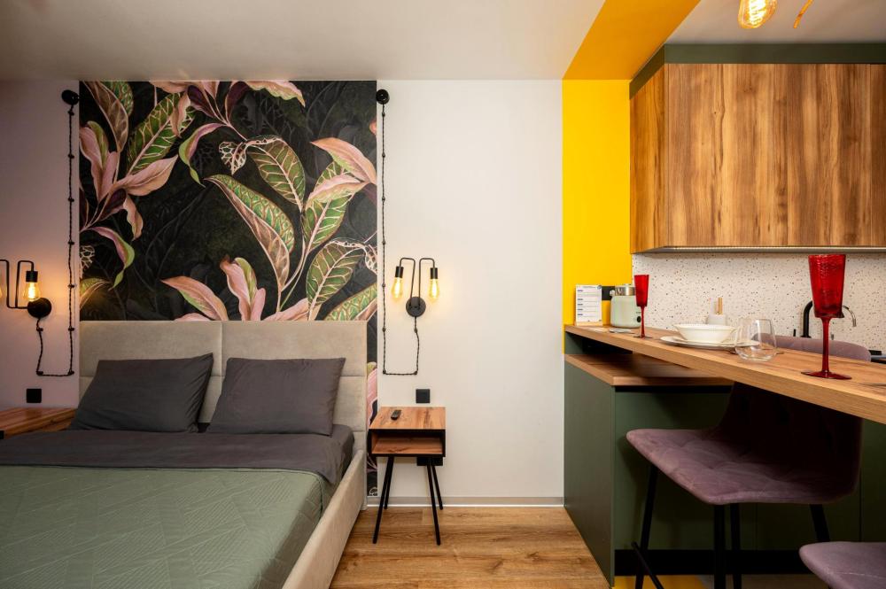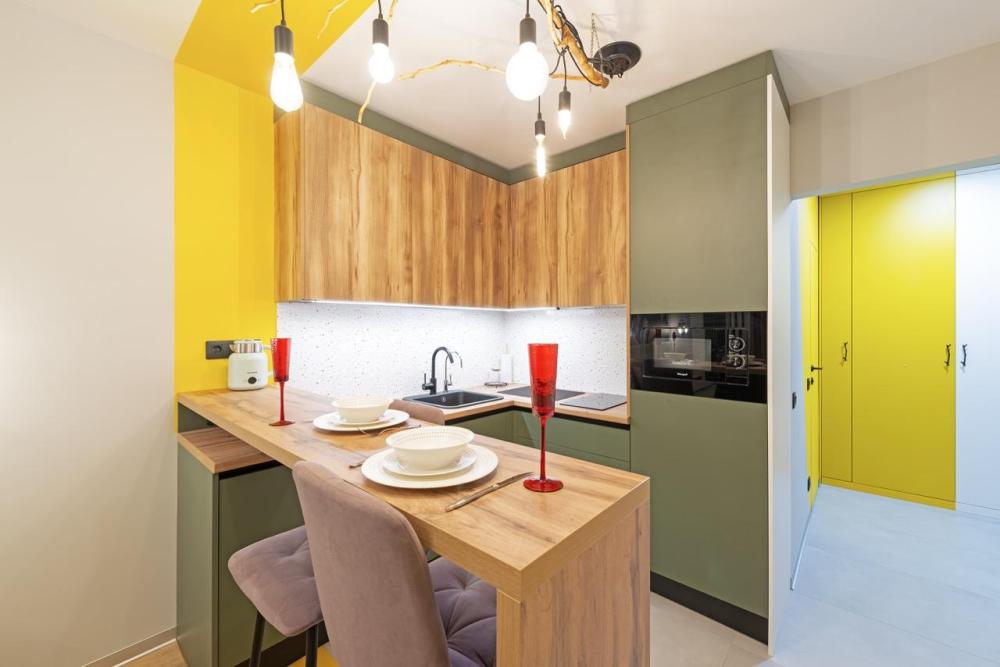 Комфортное размещение для 2 человек: двуспальная кровать (160х200). Квартира полностью соответствует всем фото. В кухонной зоне: микроволновая печь, холодильник, индукционная плита, чайник, посудомоечная машина, посуда и столовые приборы. Чай, кофе, сахар, соль, конфеты. В ванной комнате: туалет, душ, стиральная машина, фен, утюг, набор гигиенических средств, тапочки, полотенца для ног, рук и тела на каждого гостя. В местах отдыха: постельное белье на каждого гостя, ЖК телевизор со Smart TV, высокоскоростной Wi-Fi в номере бесплатно, шторы блэкаут.