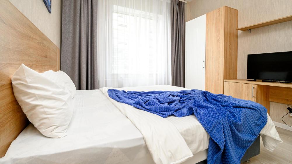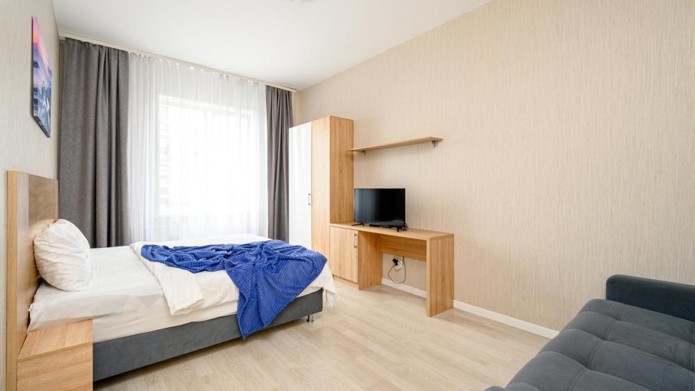 Солнечная и просторная однокомнатная квартира в ЖК «САЛЮТ» понравится любому, кто ищет тишину и покой – после долгой прогулки по городу или напряженной работы. В квартире новая мебель и свежий ремонт, царят уют и комфорт. Любителей вкусно готовить ждет функциональная кухня со всей необходимой техникой и посудой, а те, кто по вечерам предпочитает отдыхать - могут приятно провести вечер на комфортной двуспальной кровати за просмотром плазменного телевизора со всеми оплаченными подписками. В апартаментах: двуспальная кровать 160х200; большой двуспальный диван с возможным размещением 4 гостей; бесплатный WI-Fi и техника (ЖК-телевизор, стиральная машина, электрическая плита, холодильник, микроволновая печь, электрочайник); посуда и кухонные принадлежности для приготовления и приема пищи; бесплатная парковочная зона у дома и платная подземная парковка. В доме есть лифт, из окон открывается панорама на прекрасную южную часть города.