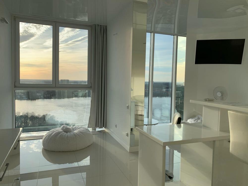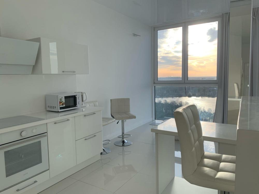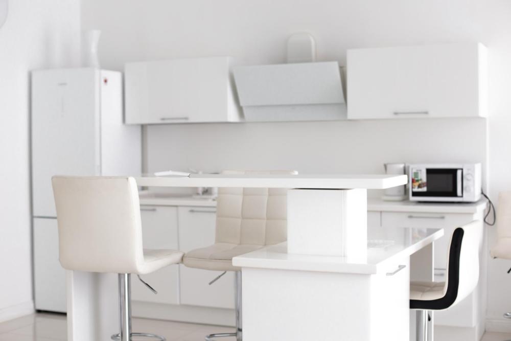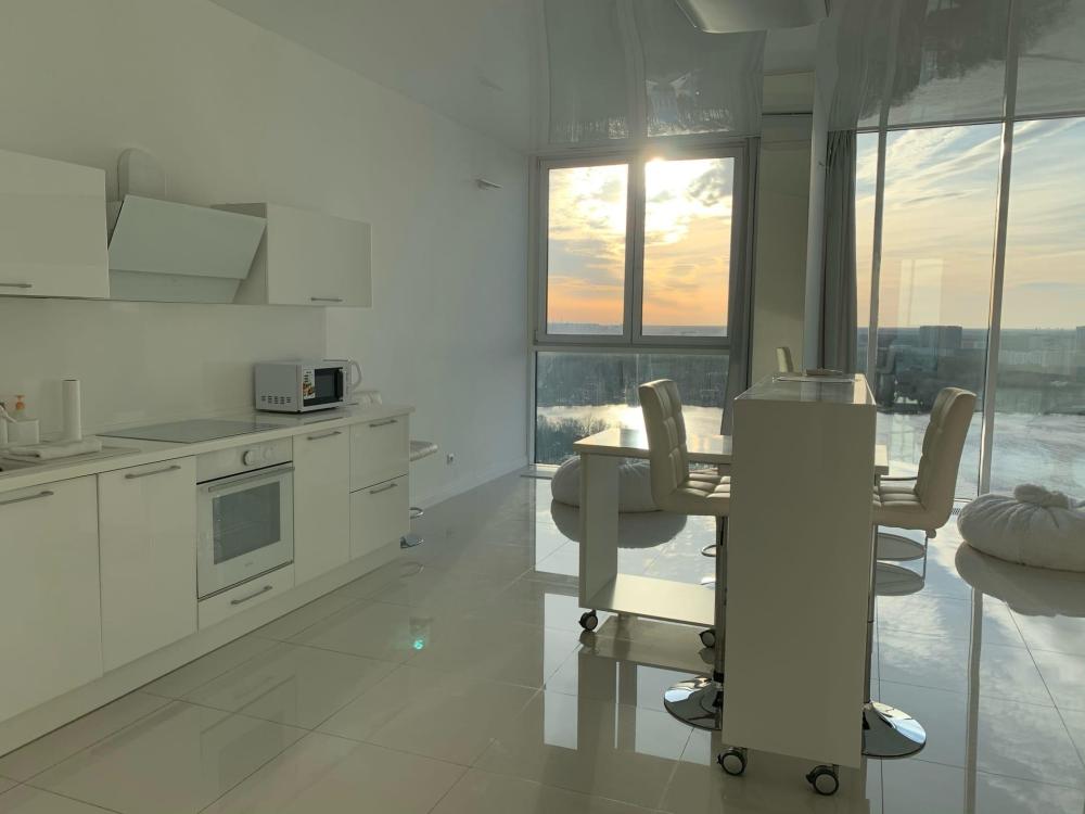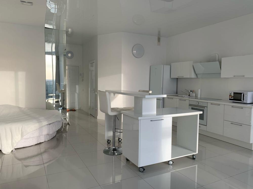Апартаменты студия №1 Кухня с посудомоечной машиной, микроволновой печью и духовкой, а также всем необходимым для приготовления: посуда, приборы, бокалы и другие необходимые мелочи- SMART TВ, высокоскоростной Wi-Fi- 4 спальных места (двухспальная кровать и диван).