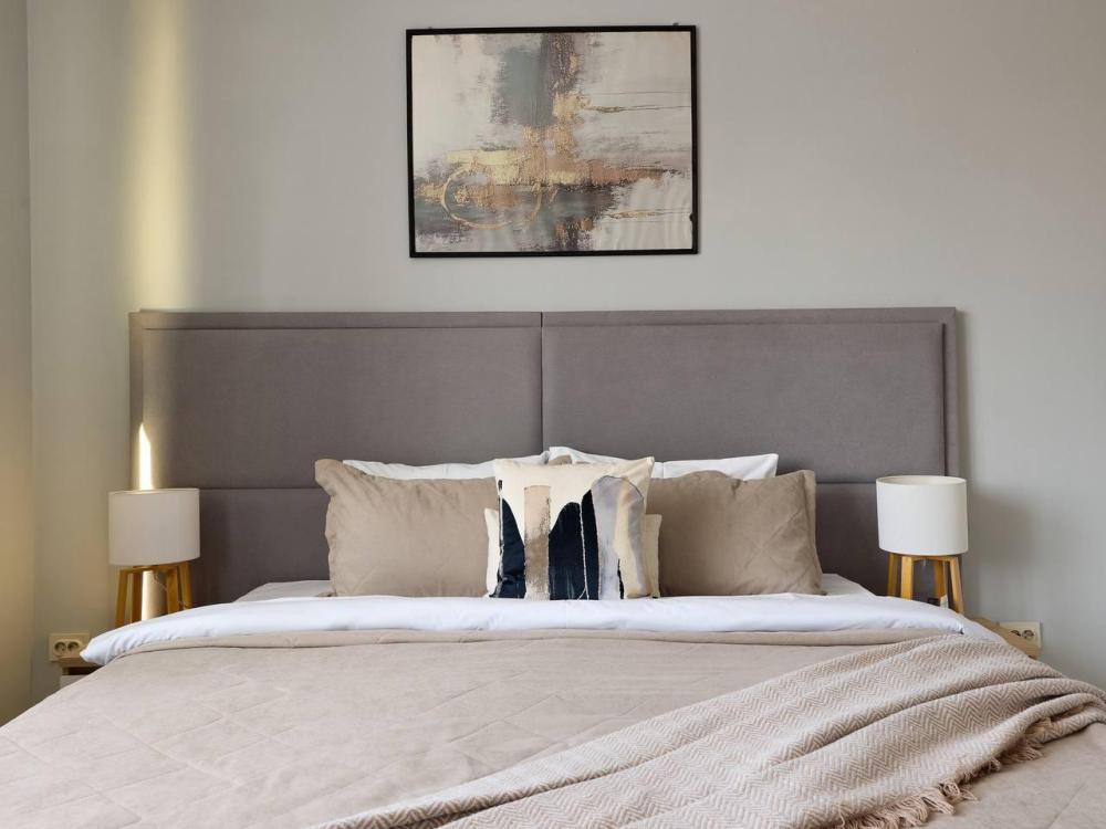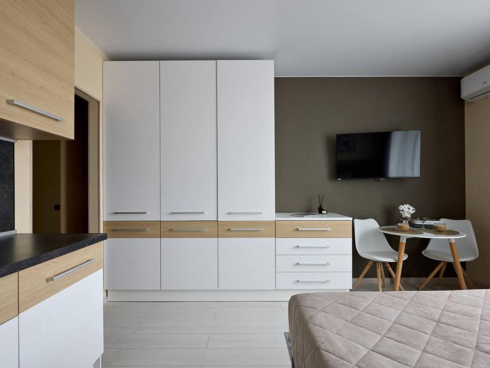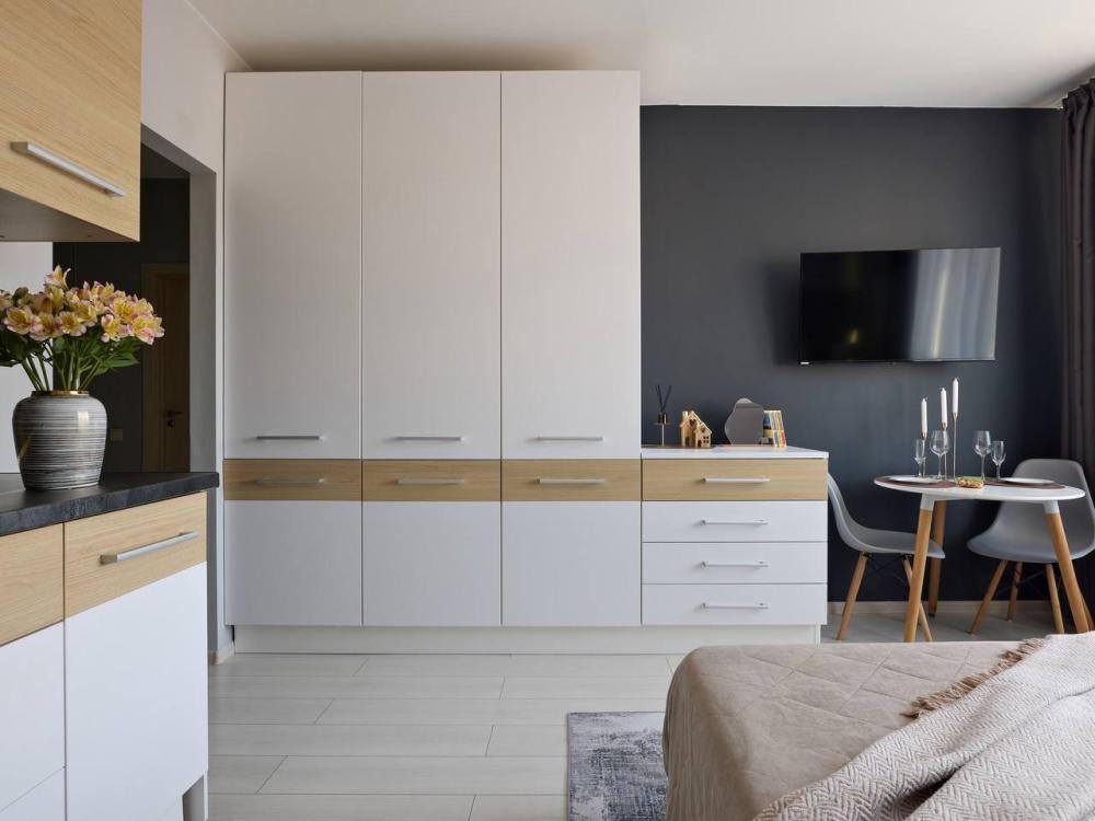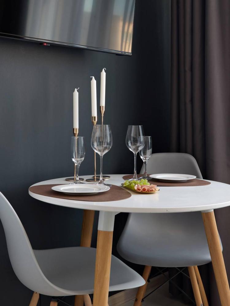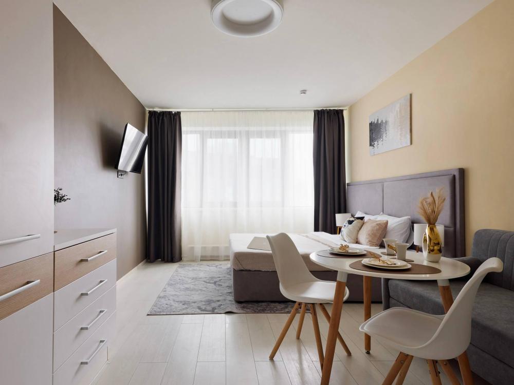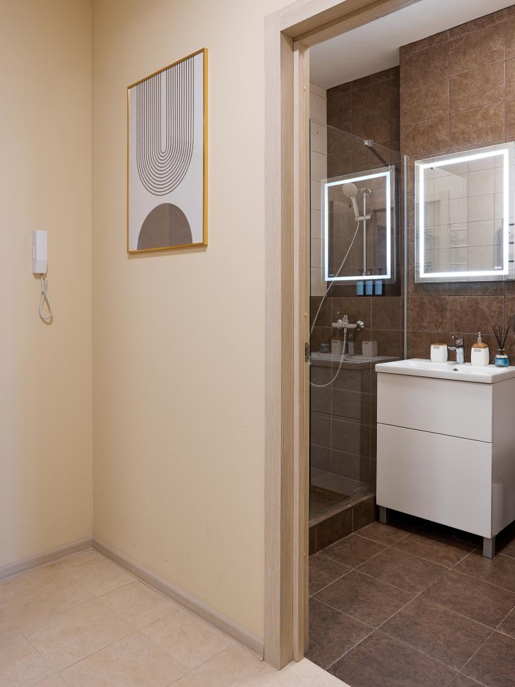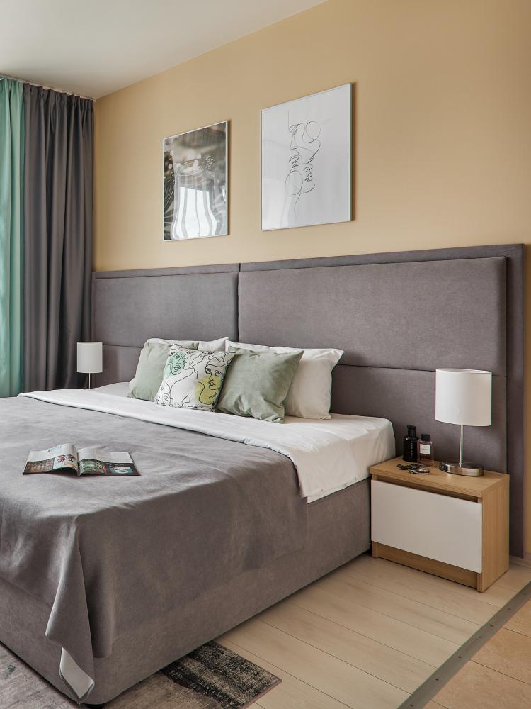 Апартаменты оборудованы всем необходимым для комфортного проживания: кровать 180х200, вместительные шкафы, вентилятор, индукционная плита, посудомоечная машина, чайник, СВЧ, холодильник, посуда и столовые приборы, стабильный wi-fi и телевизор, стиральная машина, сушилка для белья, гладильная доска, утюг, белоснежное постельное бельё высокого качества и полотенца, фен для волос, шампунь и бальзам для волос, гель для душа, одноразовые тапочки.